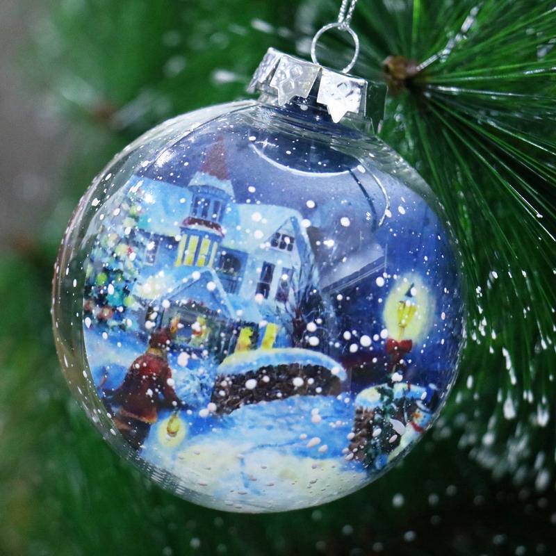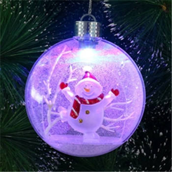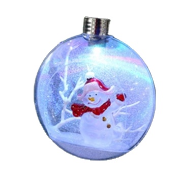 11.5cm clear plastic christmas ornament with snowman inside and mini Led light up