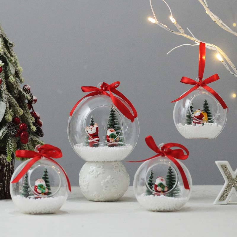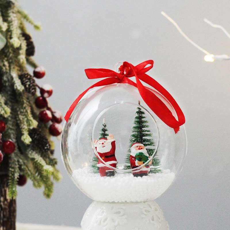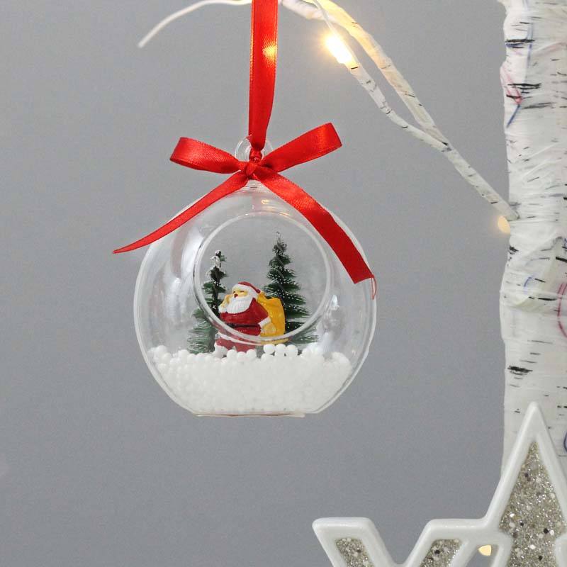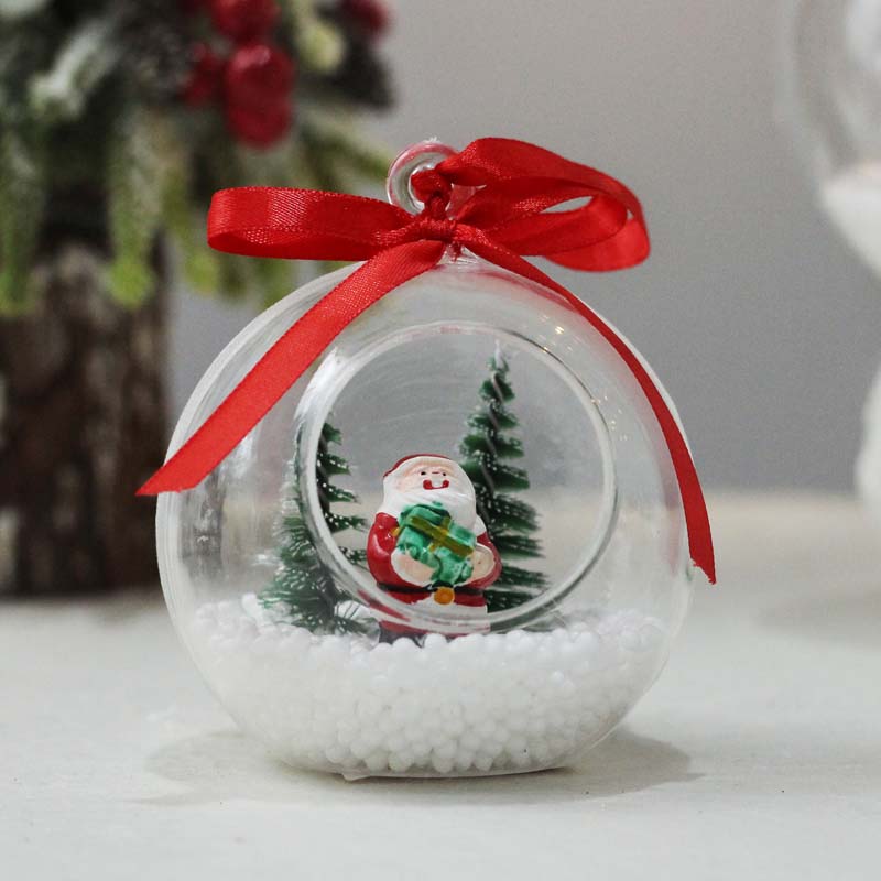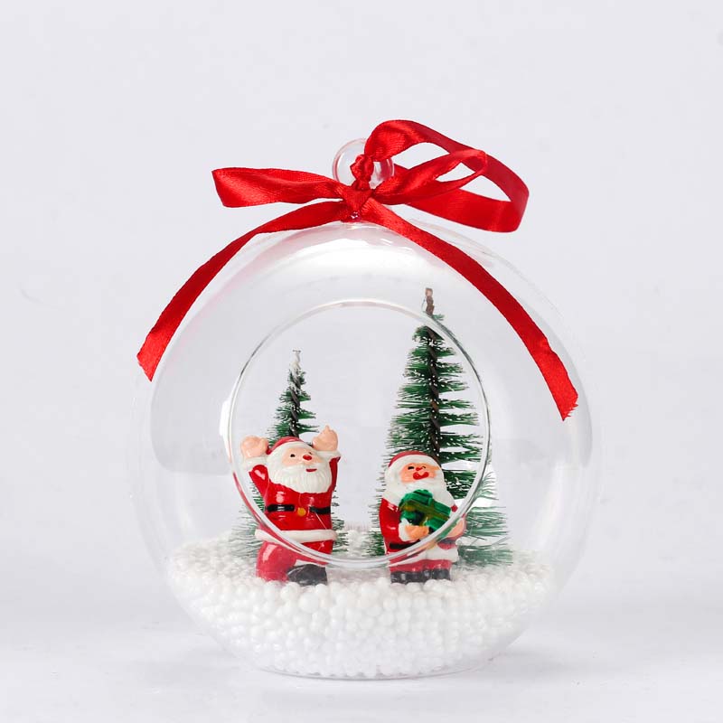 12CM Christmas plastic openable decoration ball with santa tree in it christmas gift