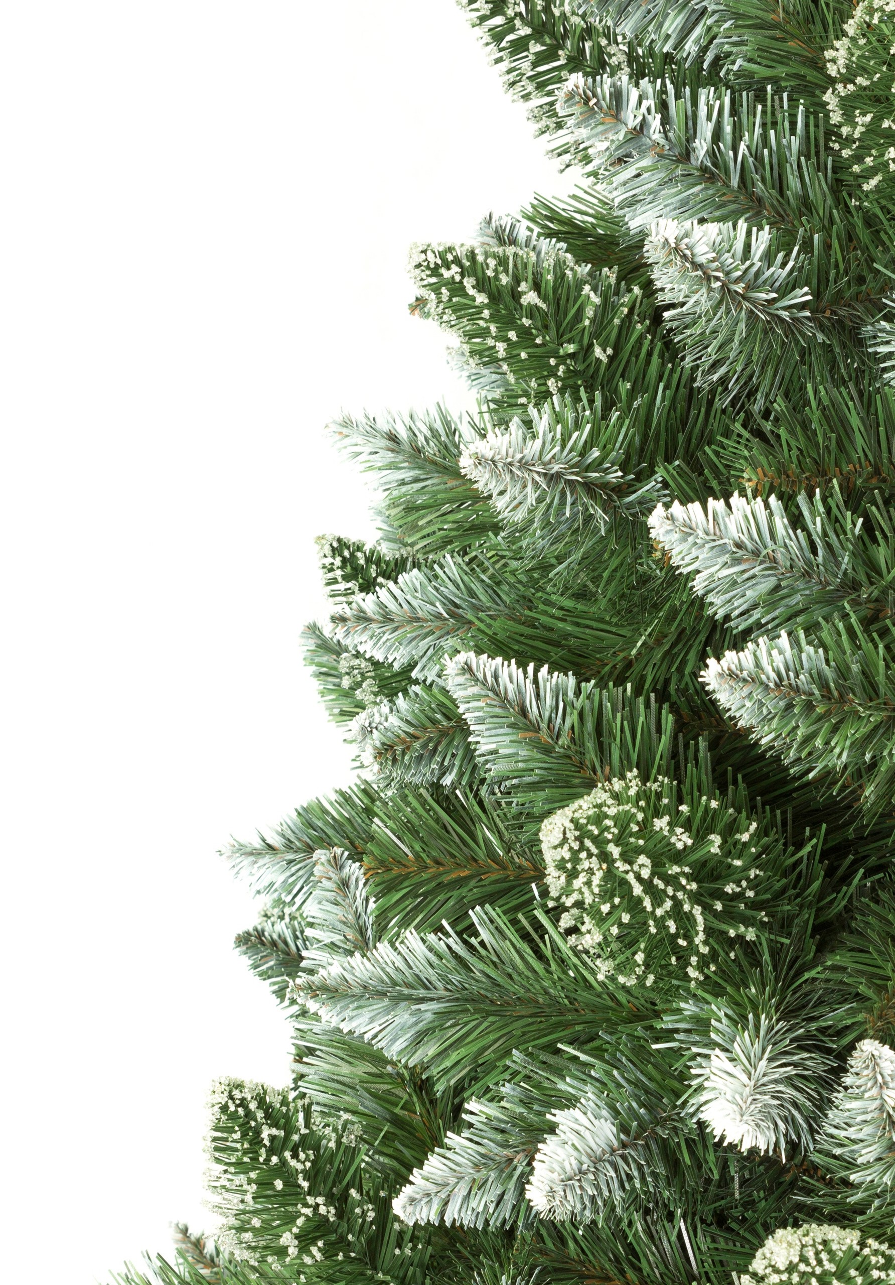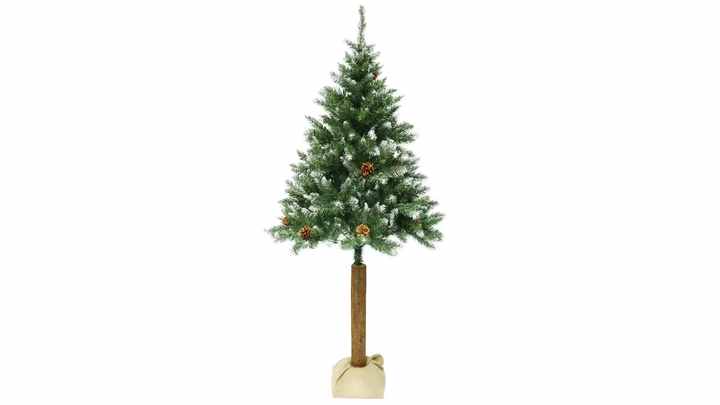 Description | Green Wooden pole PVC Christmas tree with white and pinecones as photo,hinged struction,leaf specification:7cm*0.07mm+5cm*0.1mm |