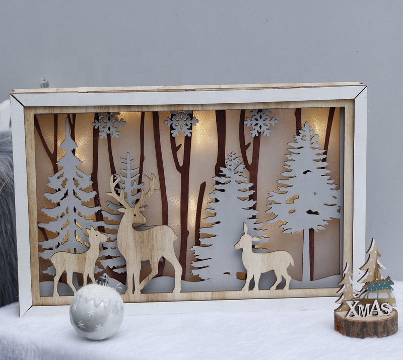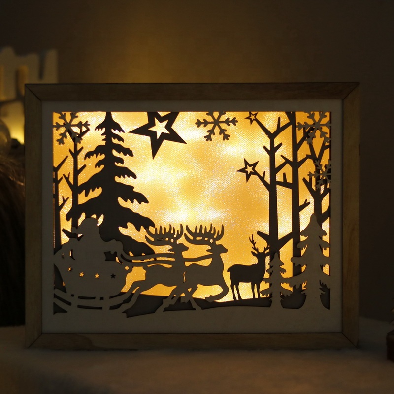 2020 New LED lighted frame Christmas decoration deer lighting lamp Ornaments wooden photo frame