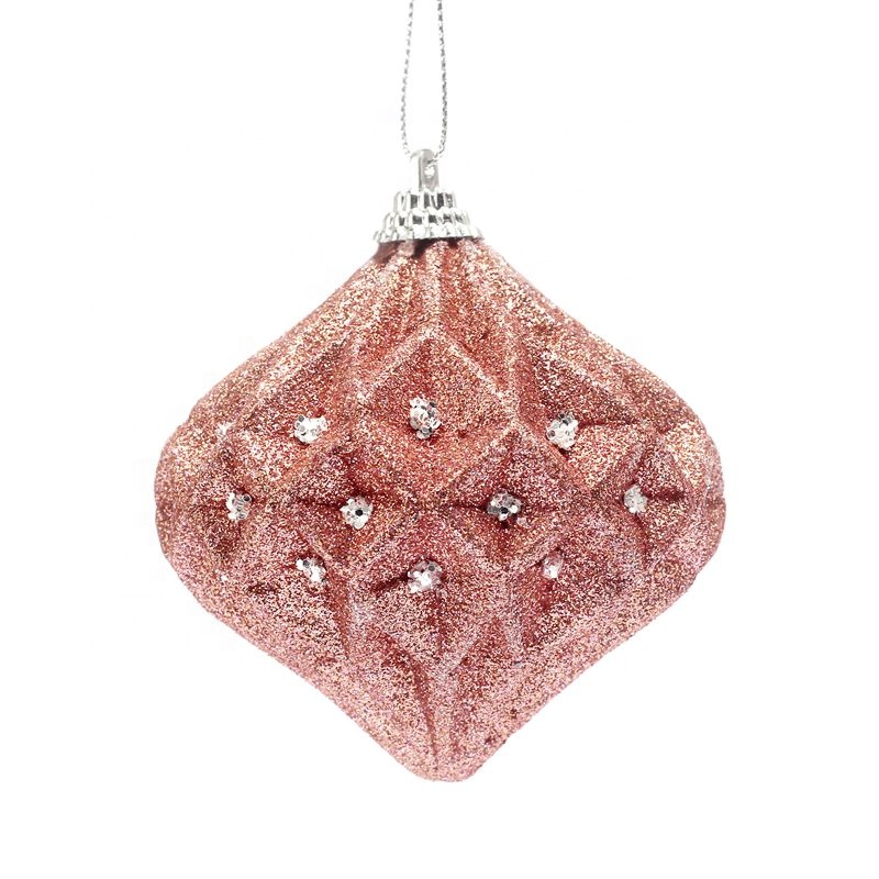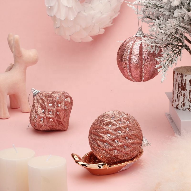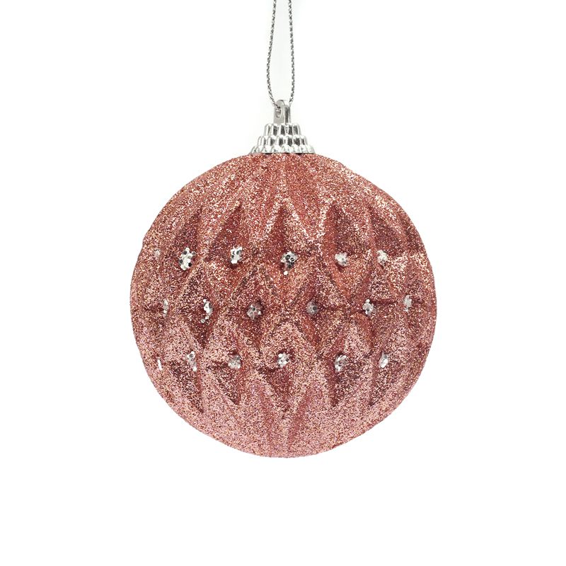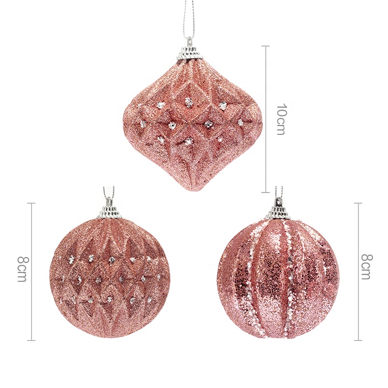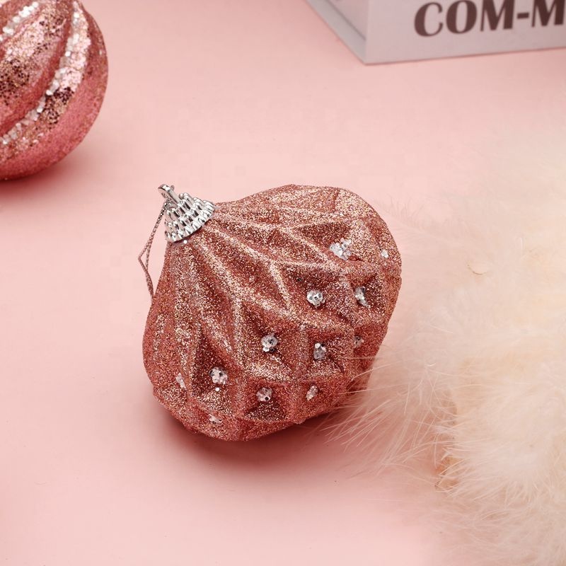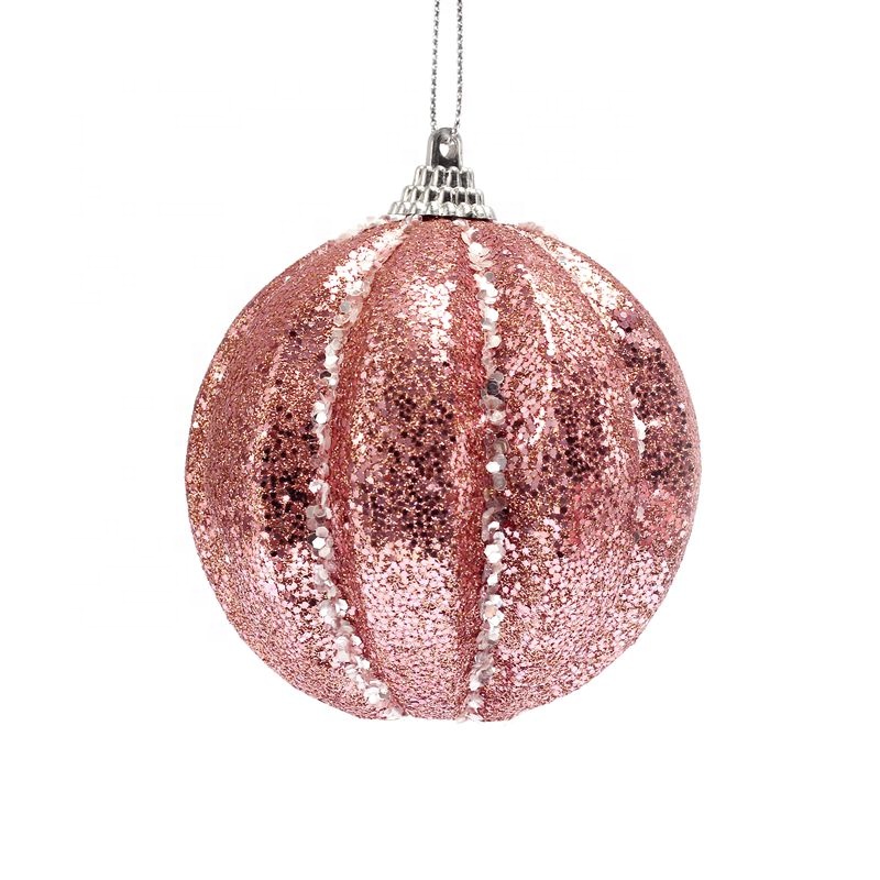 2021 new design christmas foam ball with rose gold glitter christmas hanging ball decoration christmas baubles