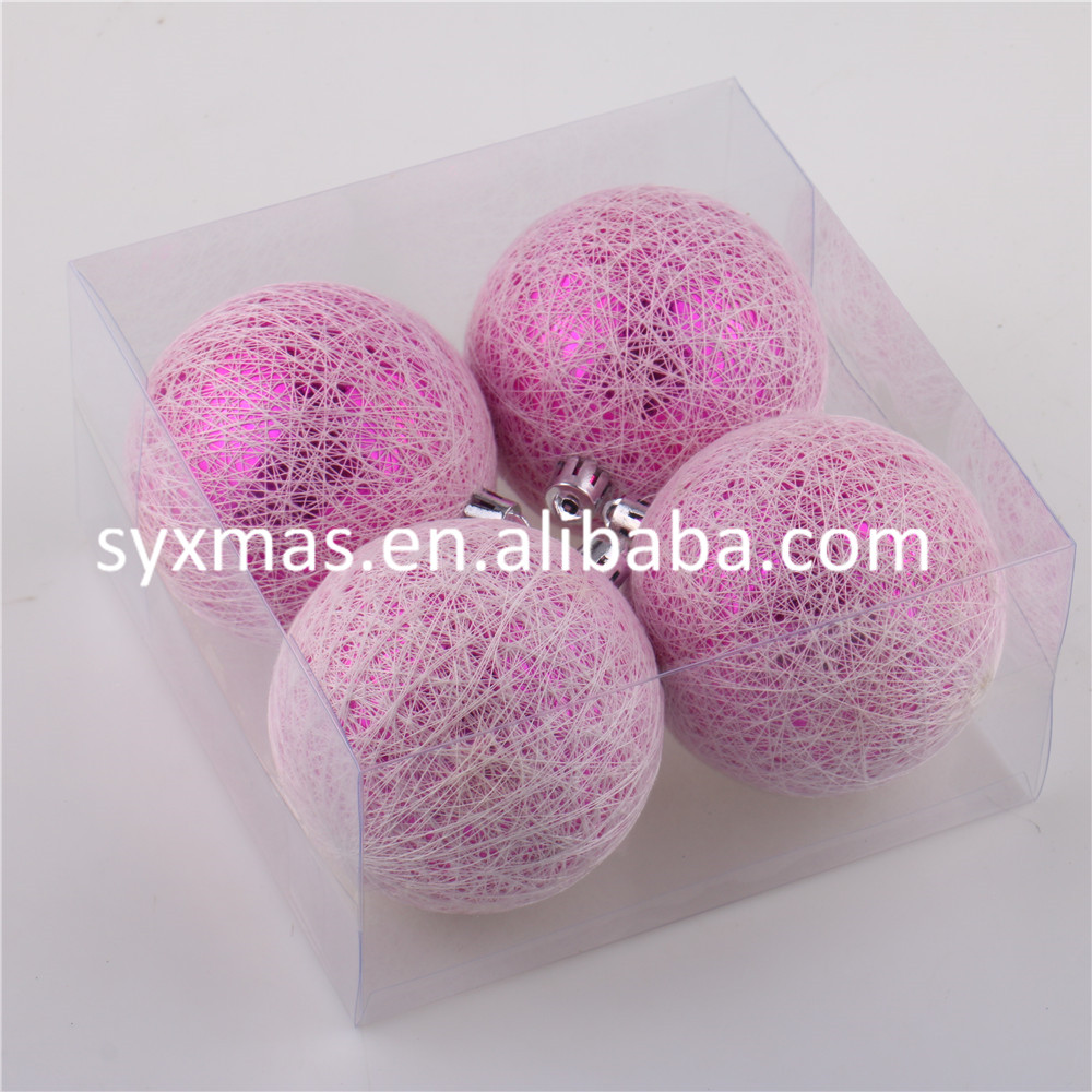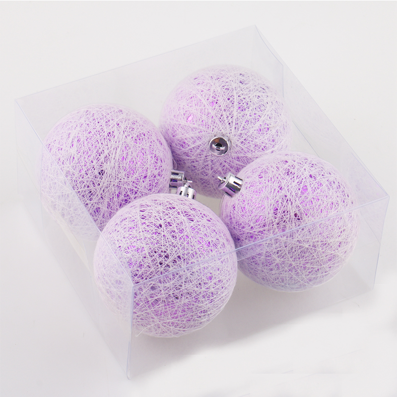 2021 Yiwu Shuangyuan wholesale 8cm purple clear ball with string line wrapped Christmas ball tree hanging ornament ball