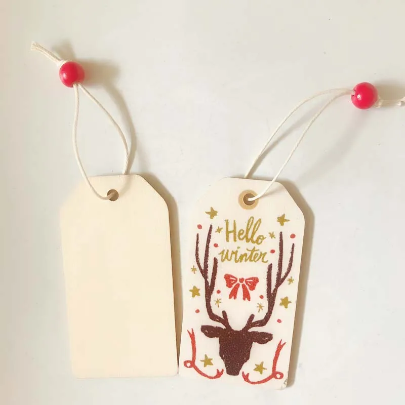 | Printing Techniques for Graphics: | Silk screen printing | Name: | Wooden Hangtag |