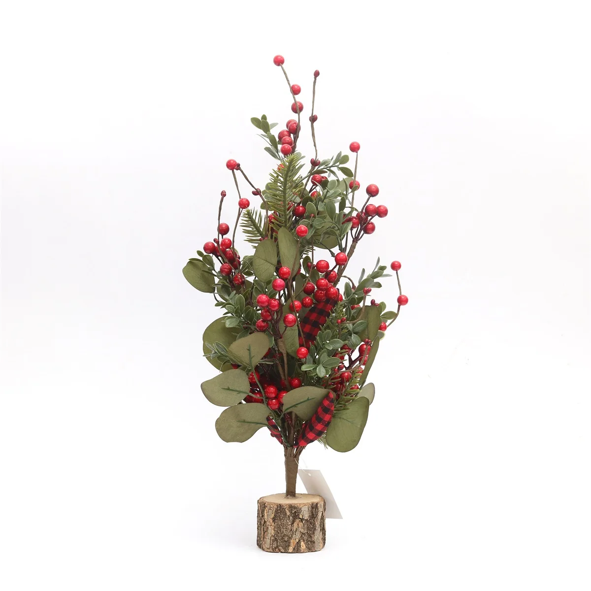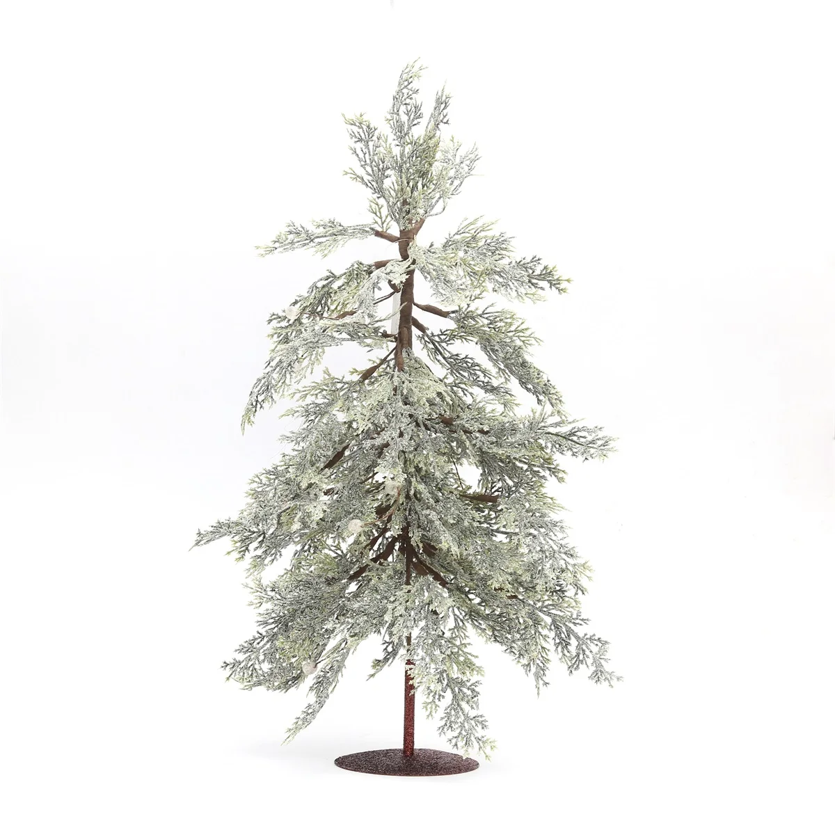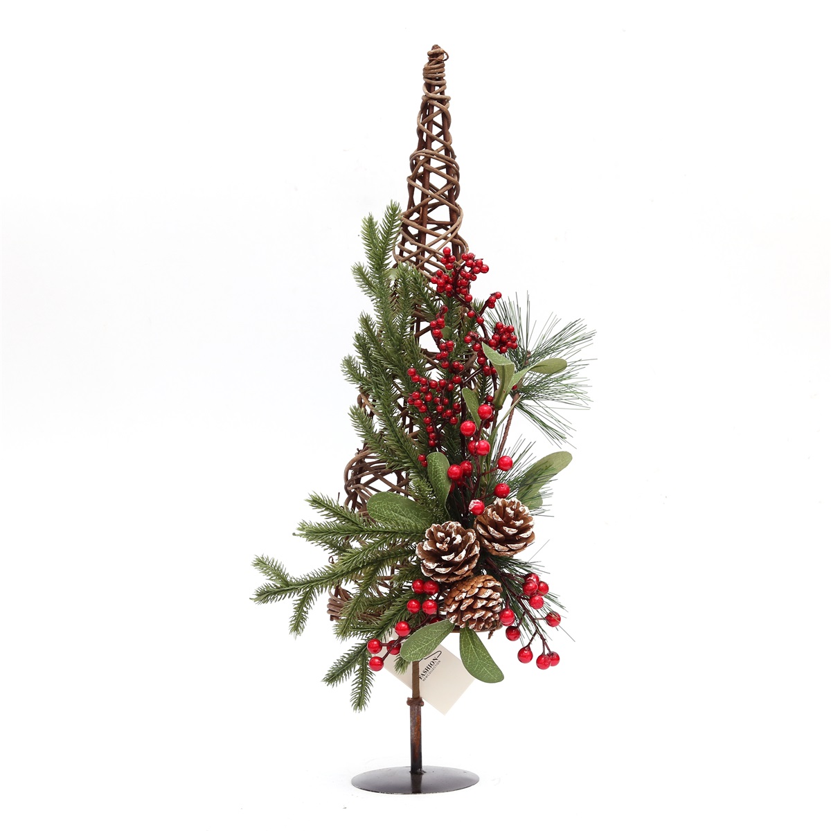 2022 NEW high quality artificial christmas mini tree decor with white painted pine cone natural rattan tree