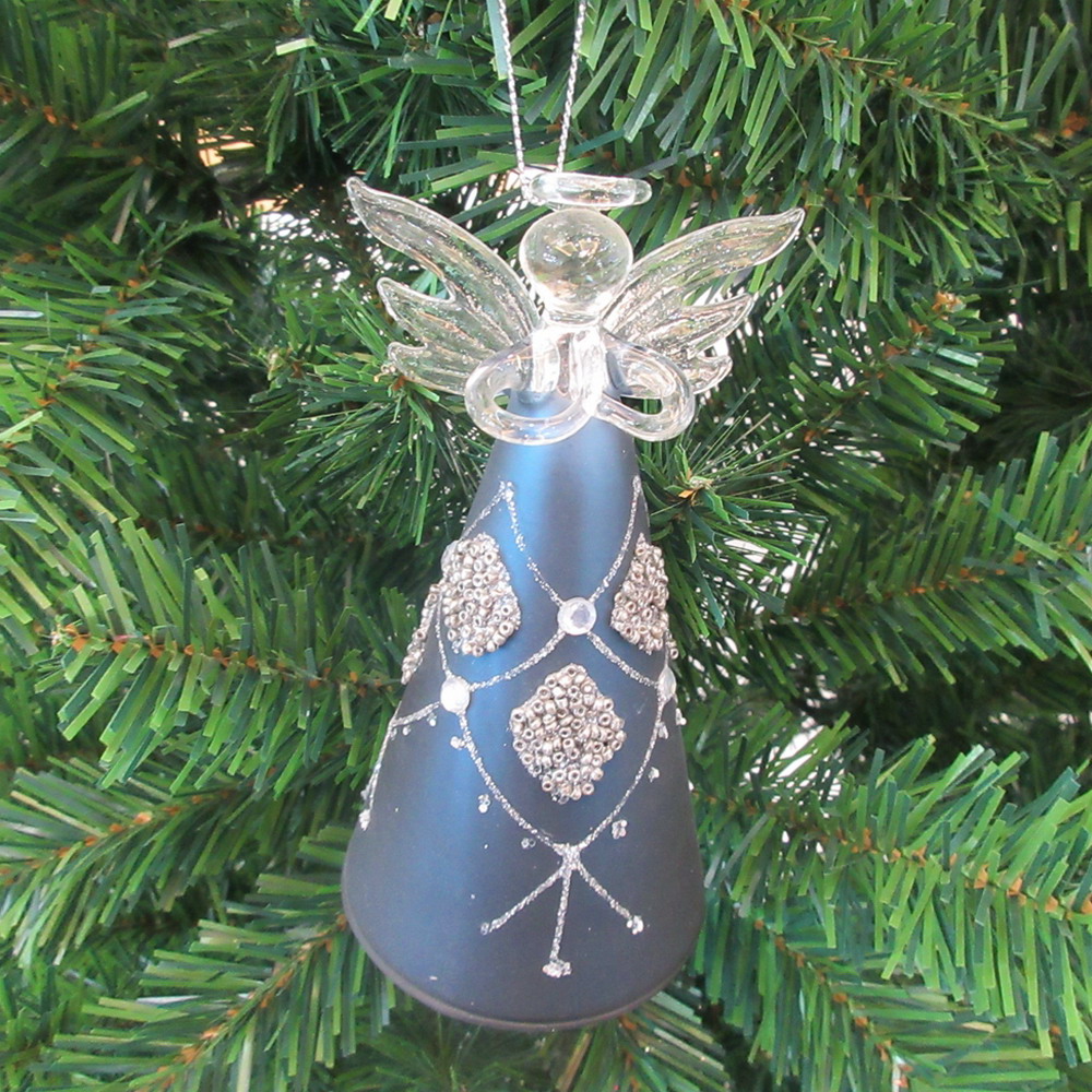 2022 new product 10cm shiny night blue painted glass angel tree hanging decoration