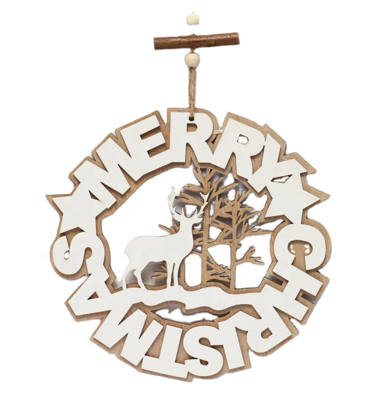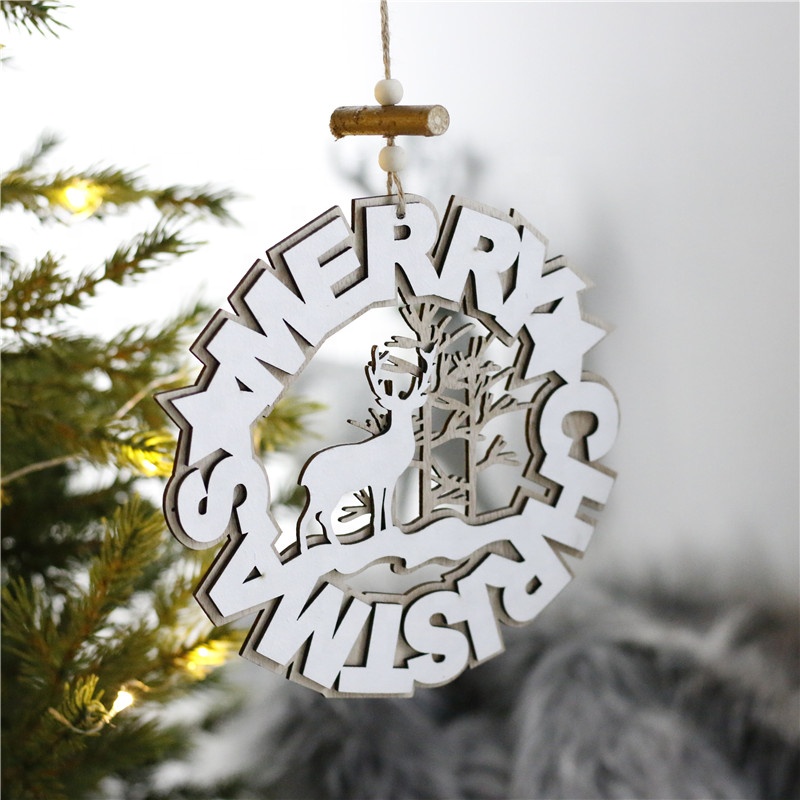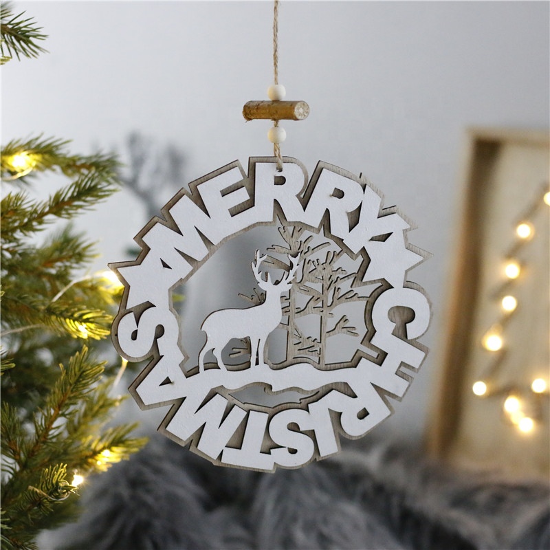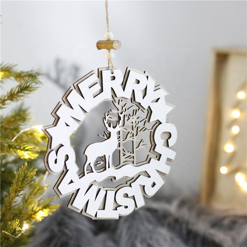 2022 Yiwu Shuangyuan Customized Wooden Arts Crafts Christmas Decoration Ornaments Wood hanging Ornament Deer Pattern
