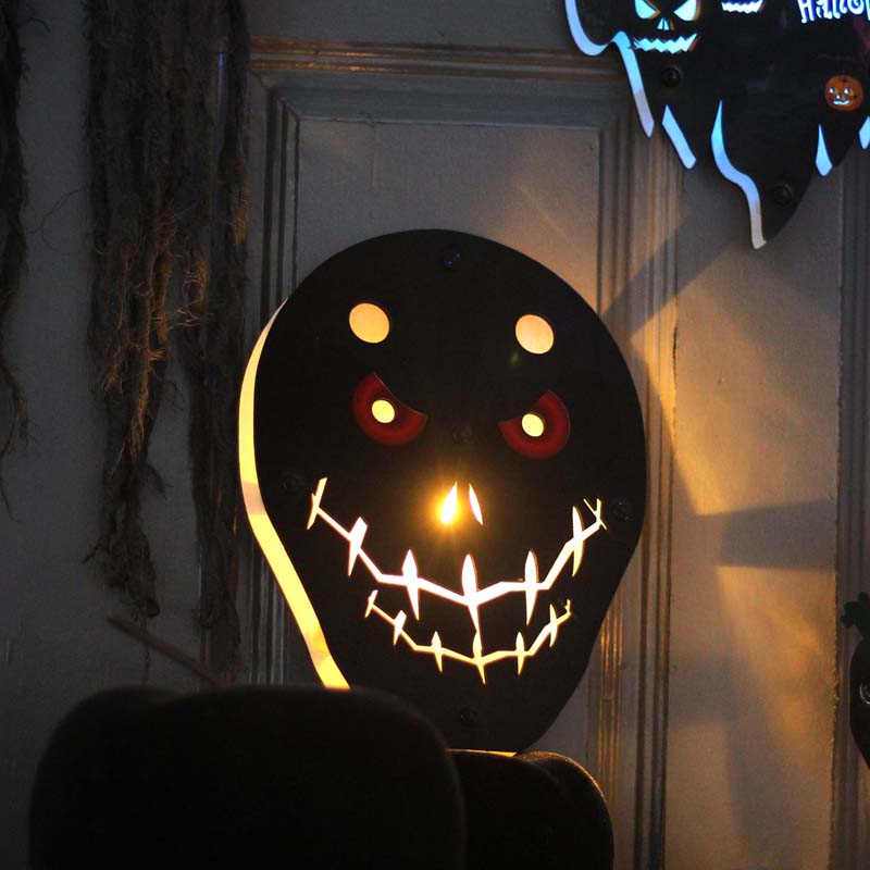 2023 Happy Halloween hanging paperboard skull with lantern pendant lamp for gift decoration