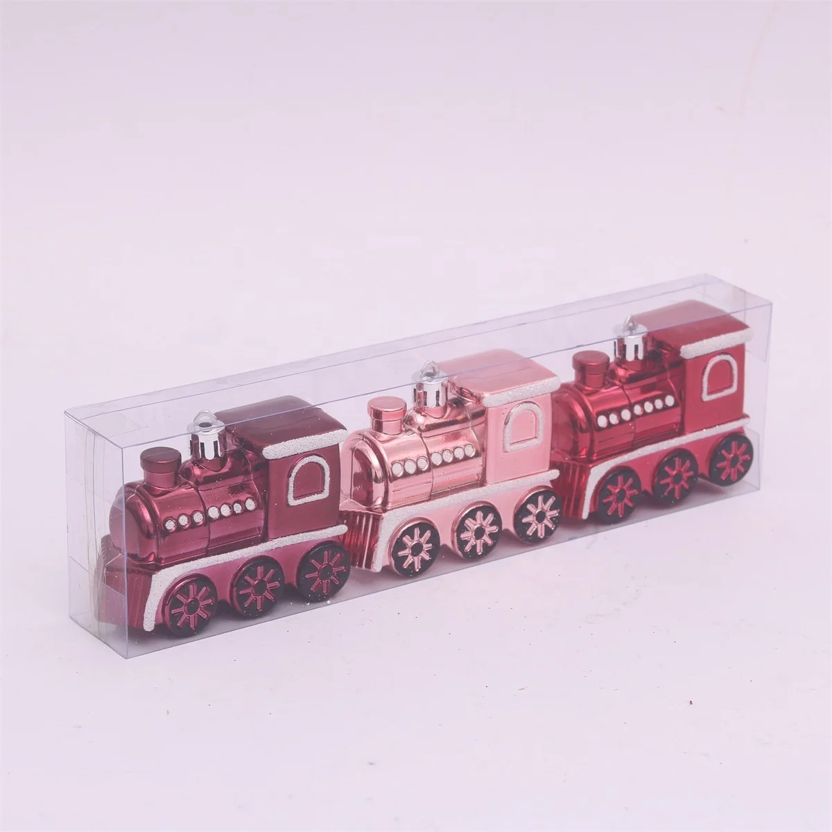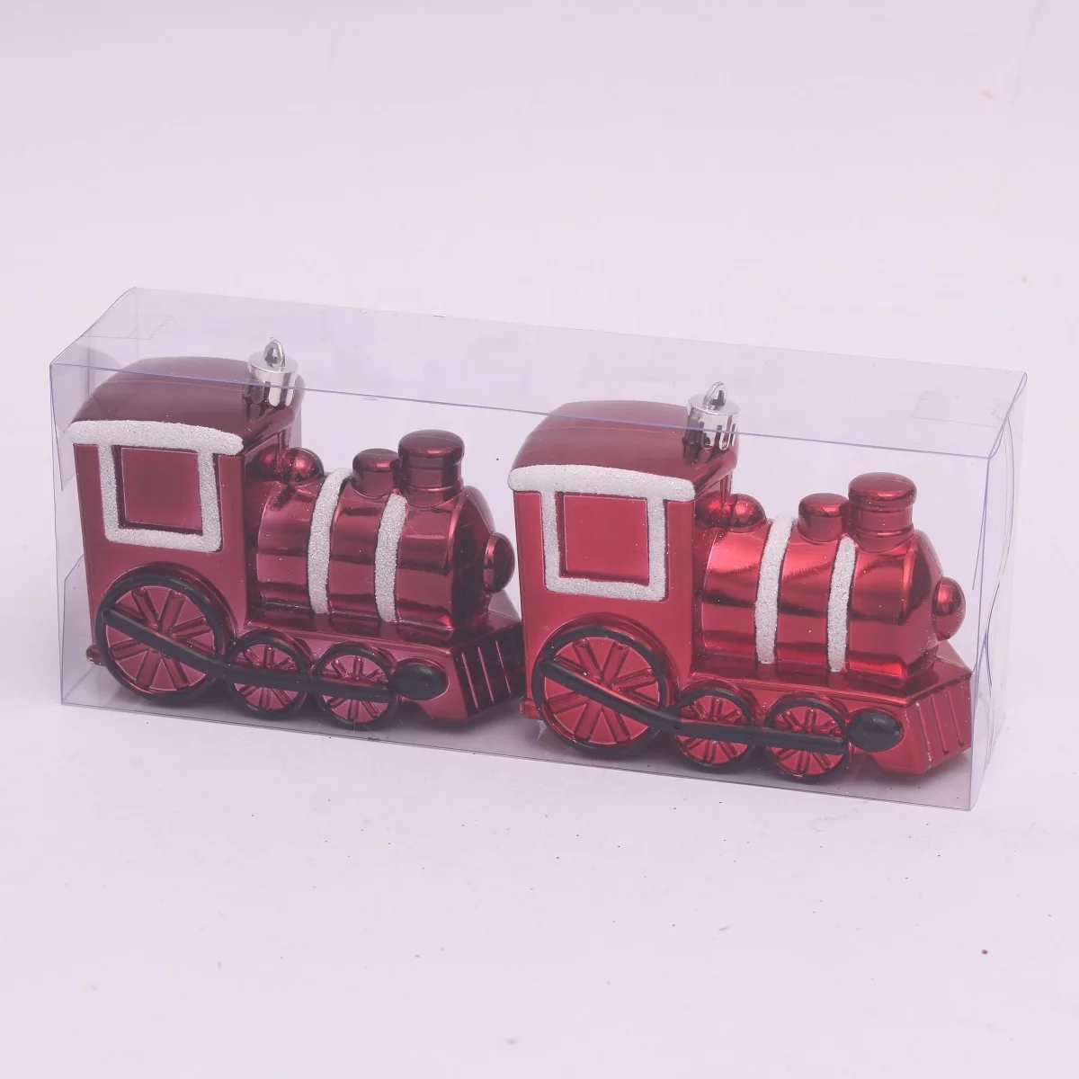 2023 Hot Sale 8CM cm PET Shinny effect Hand Painted Christmas train for Christmas /Holiday/Home/Tree Decoration