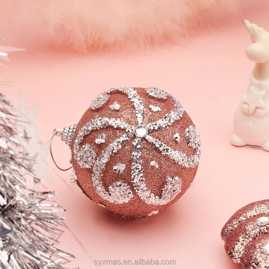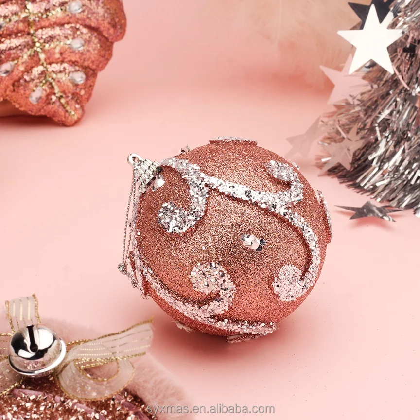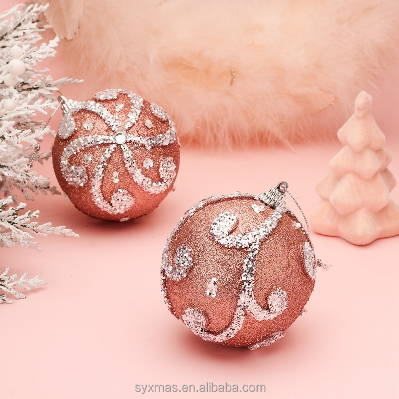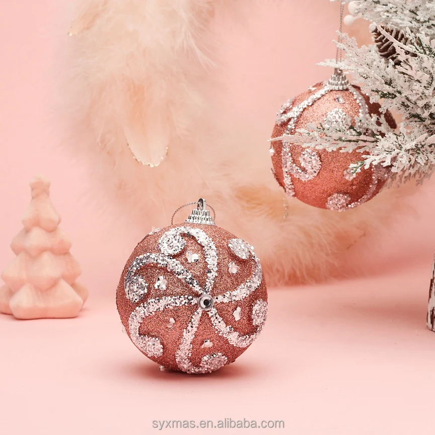 2023 New Christmas Ball Pink Painted Foam Ball Christmas Tree Ornament Decorative Christmas Balls Ornaments