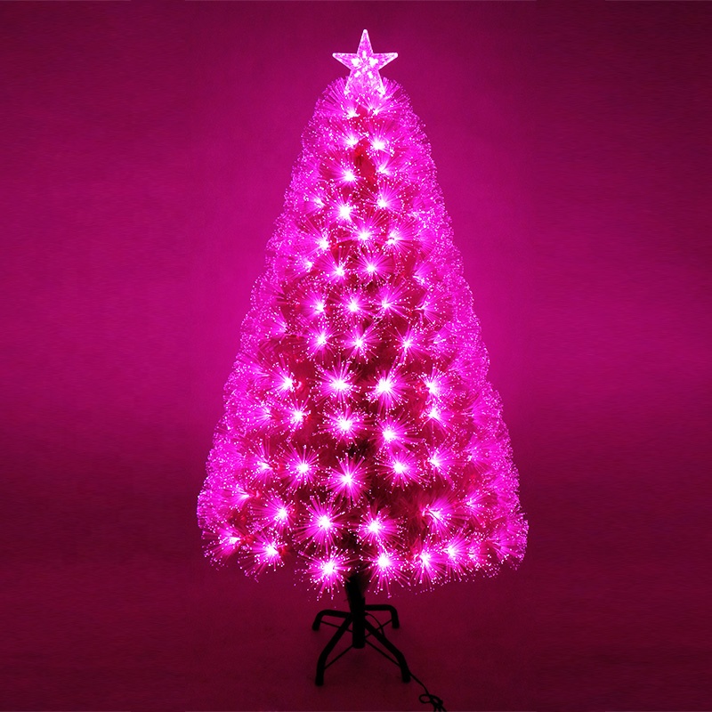 2023 New Design Pink Fiber Optic Christmas Tree with top star decoration/festival Decoration