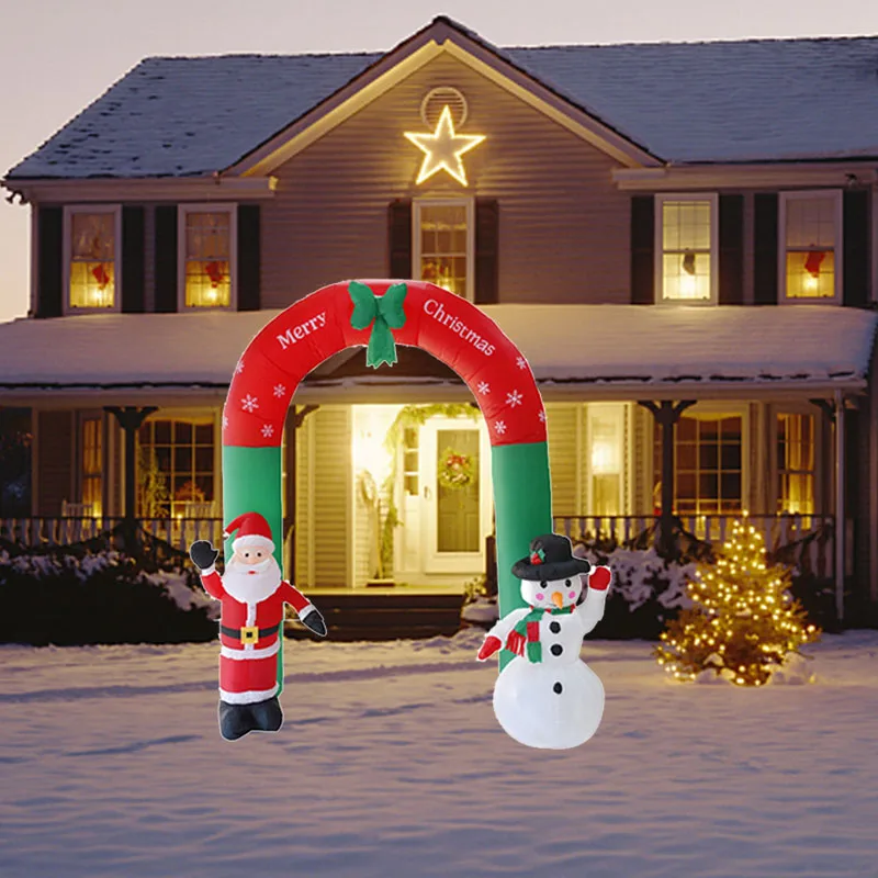 2.4m Christmas Inflatable Archway 3D Cartoon Yards Arch with Santa Snowman for Xmas New Year Party Gift