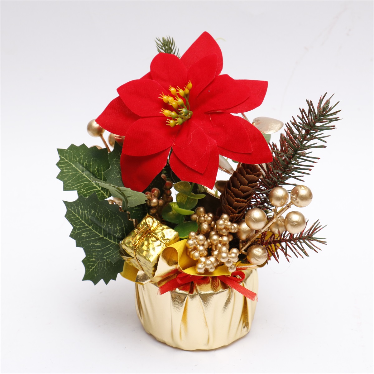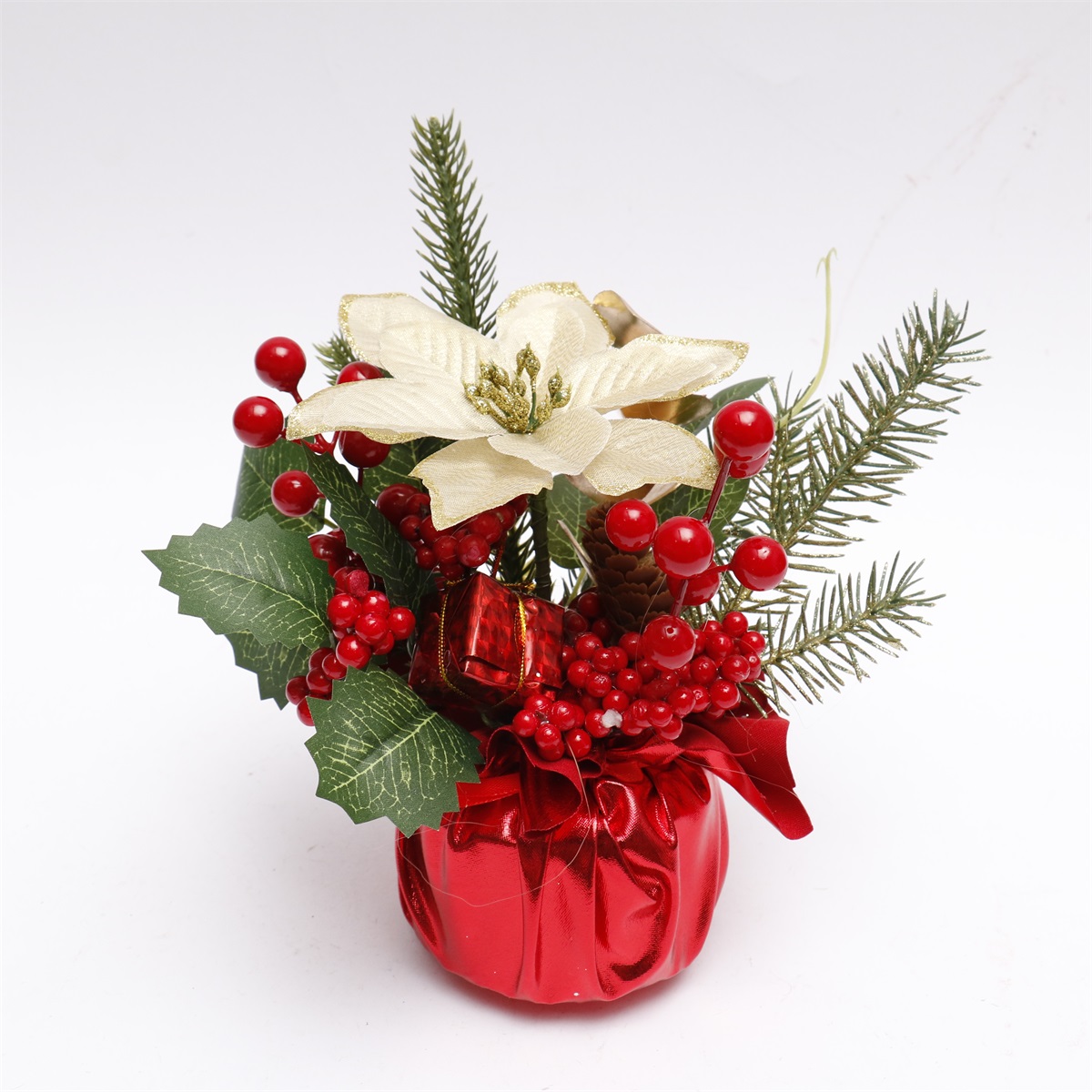 27CM tabletop decorated tree with PE+berries decoration foam stand with red and black checked cloth wrapped