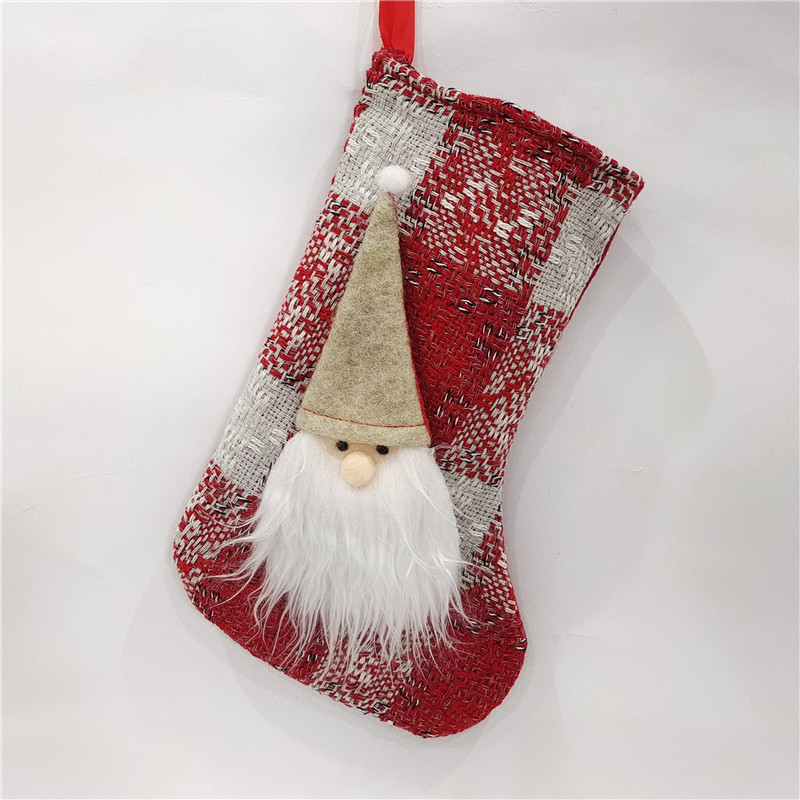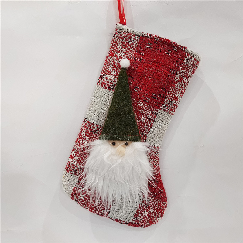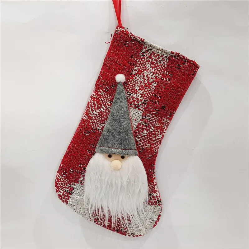 30CM luxury Christmas tree decor Santa Claus with Xmas Plush Christmas linen stocking
