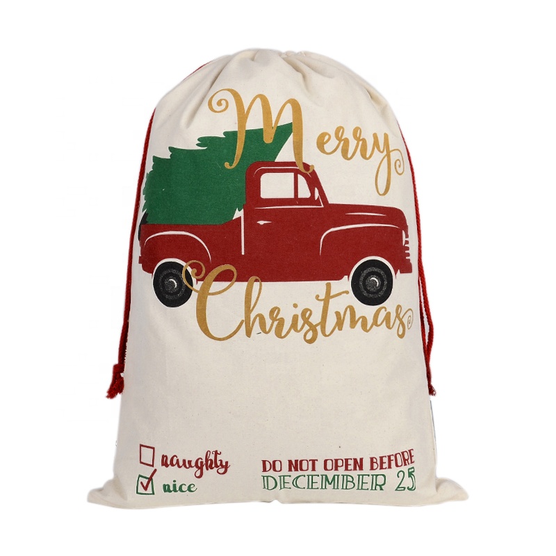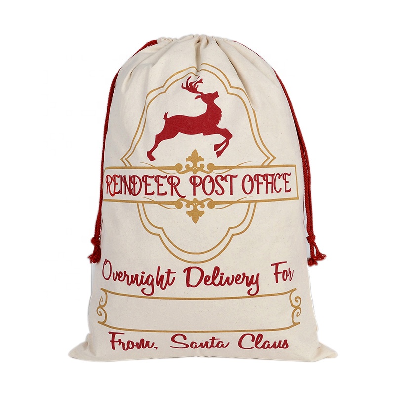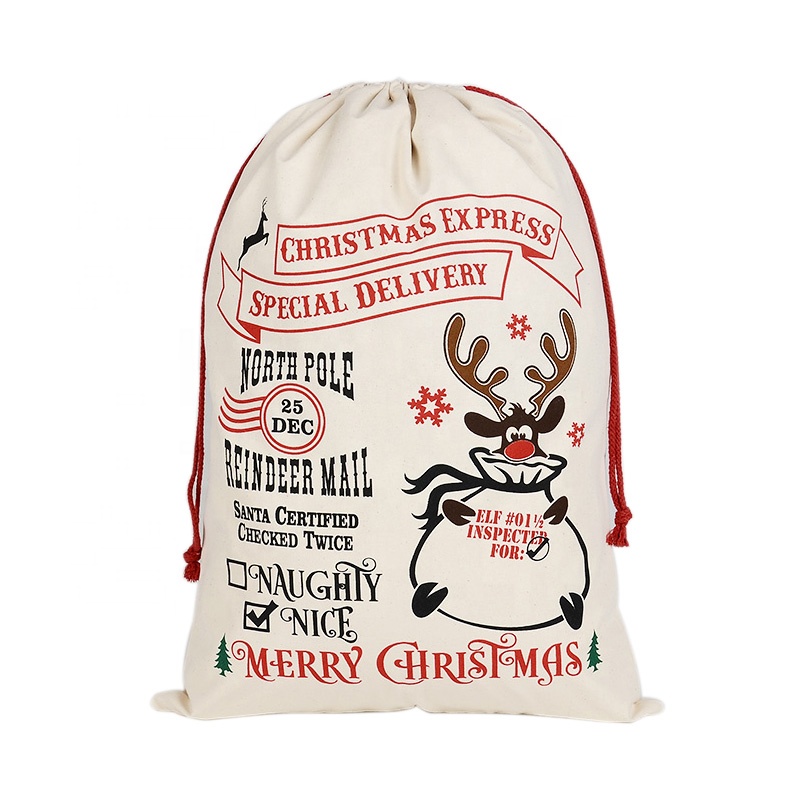 50*70cm Pure cotton Christmas gift bag environmental protection beam mouth Christmas theme bag