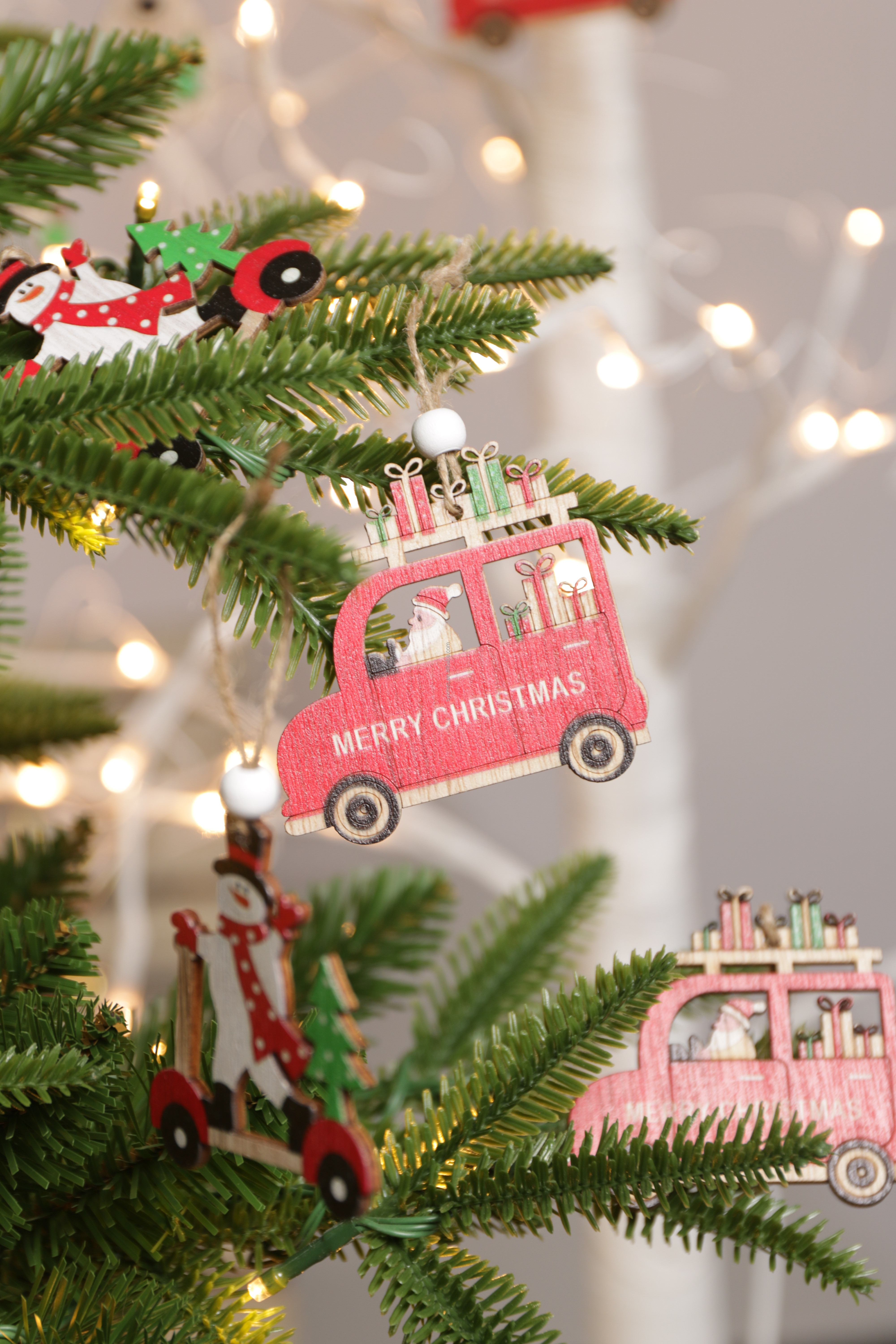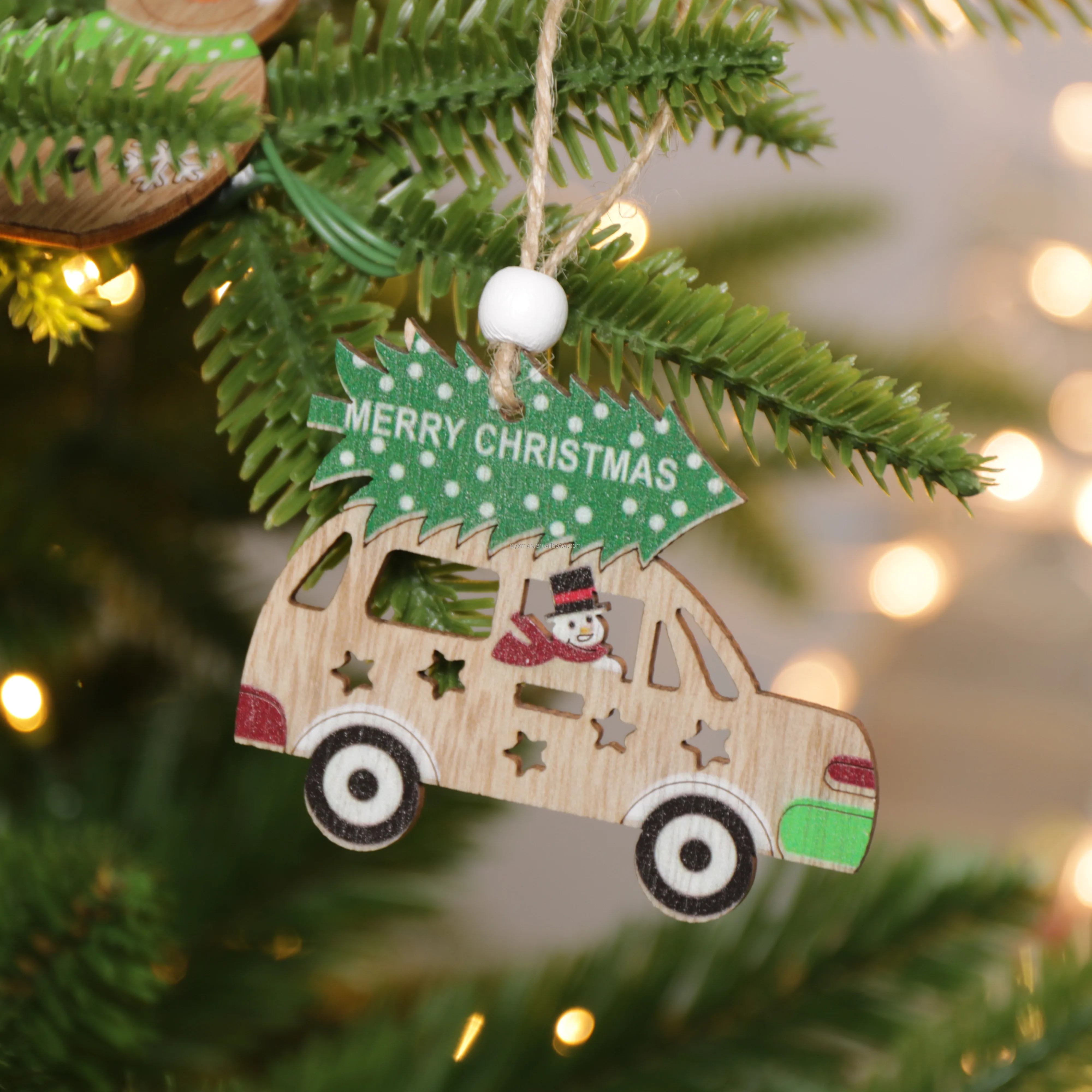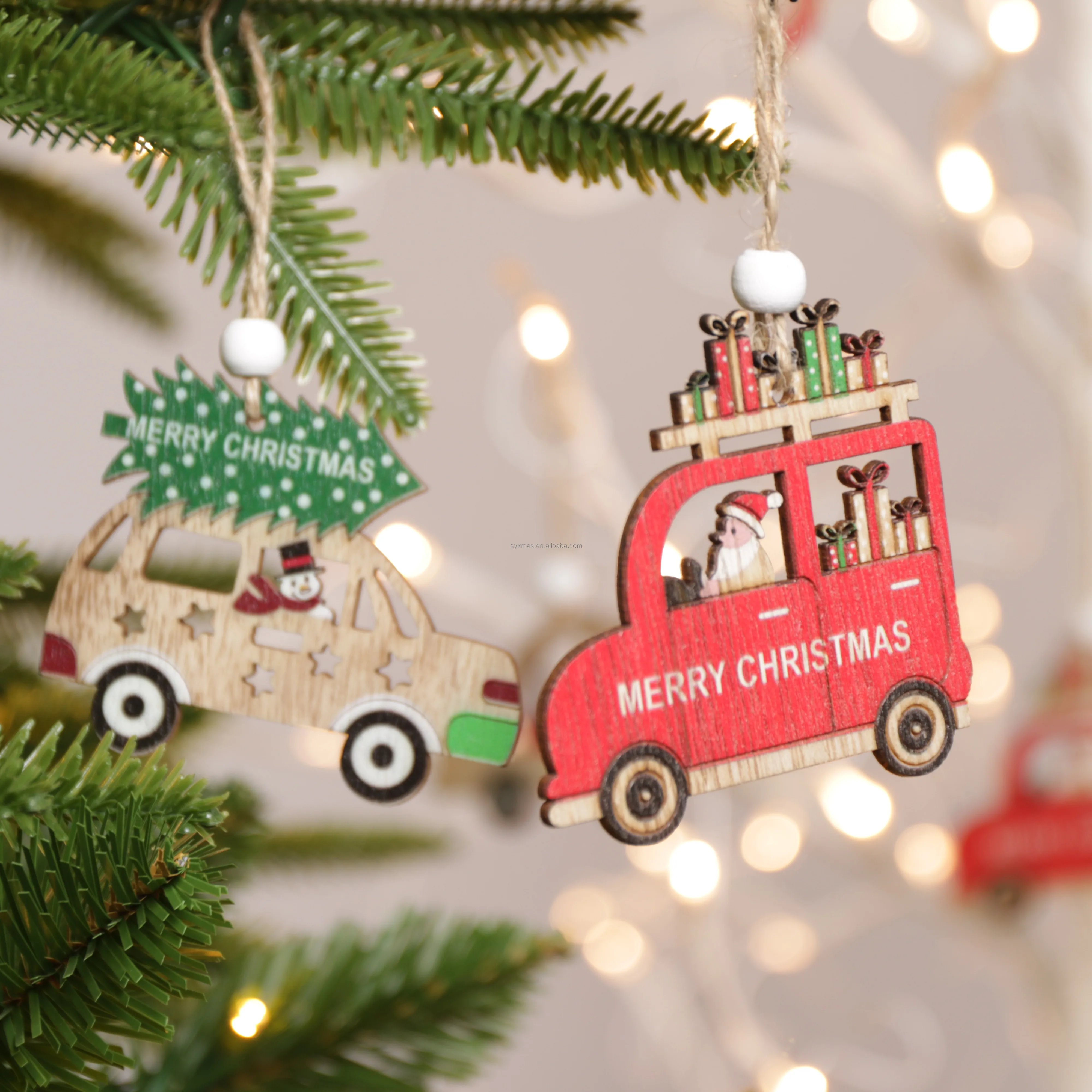 8cm Color painted Colorful Wooden Hanging Car Christmas Decoration for Christmas Tree