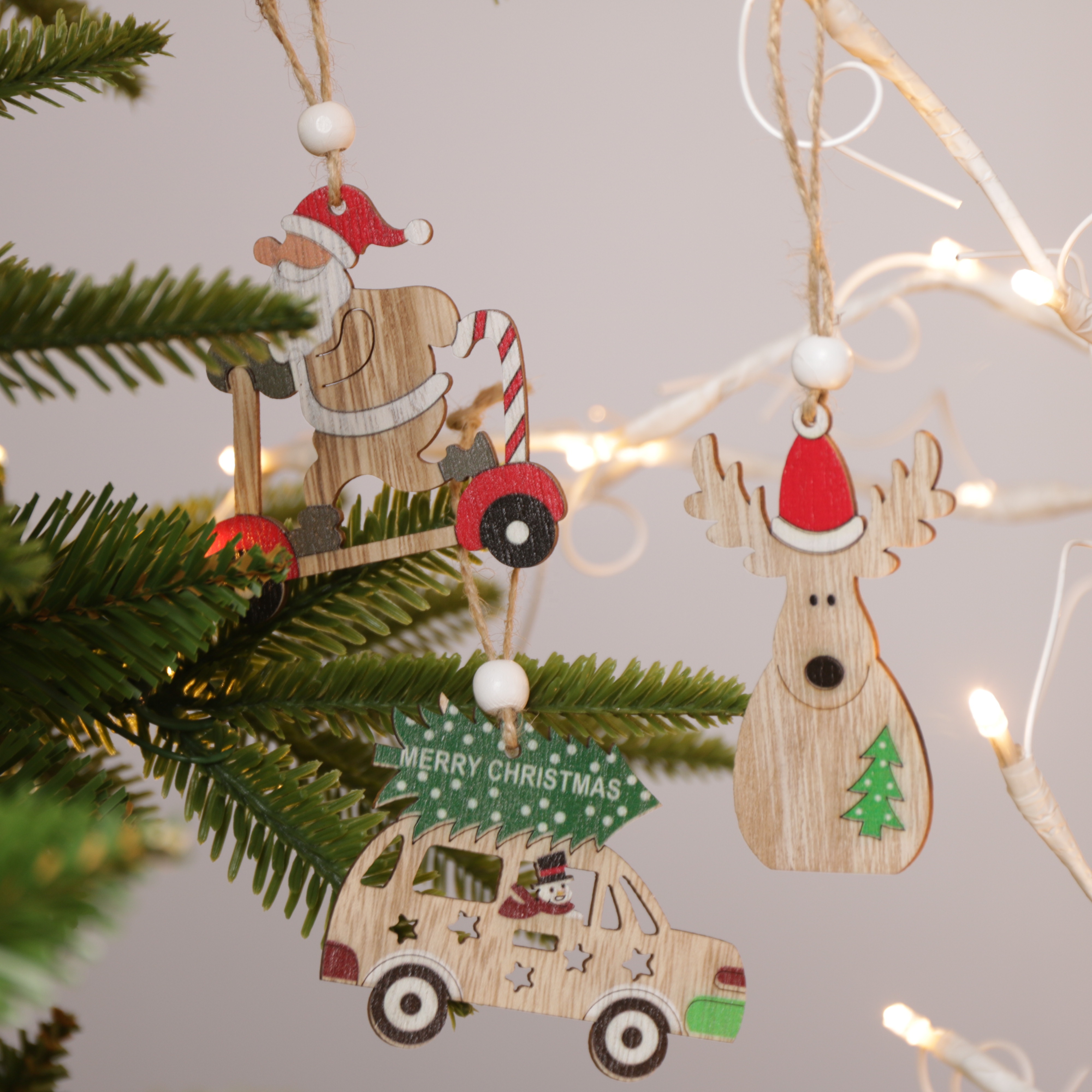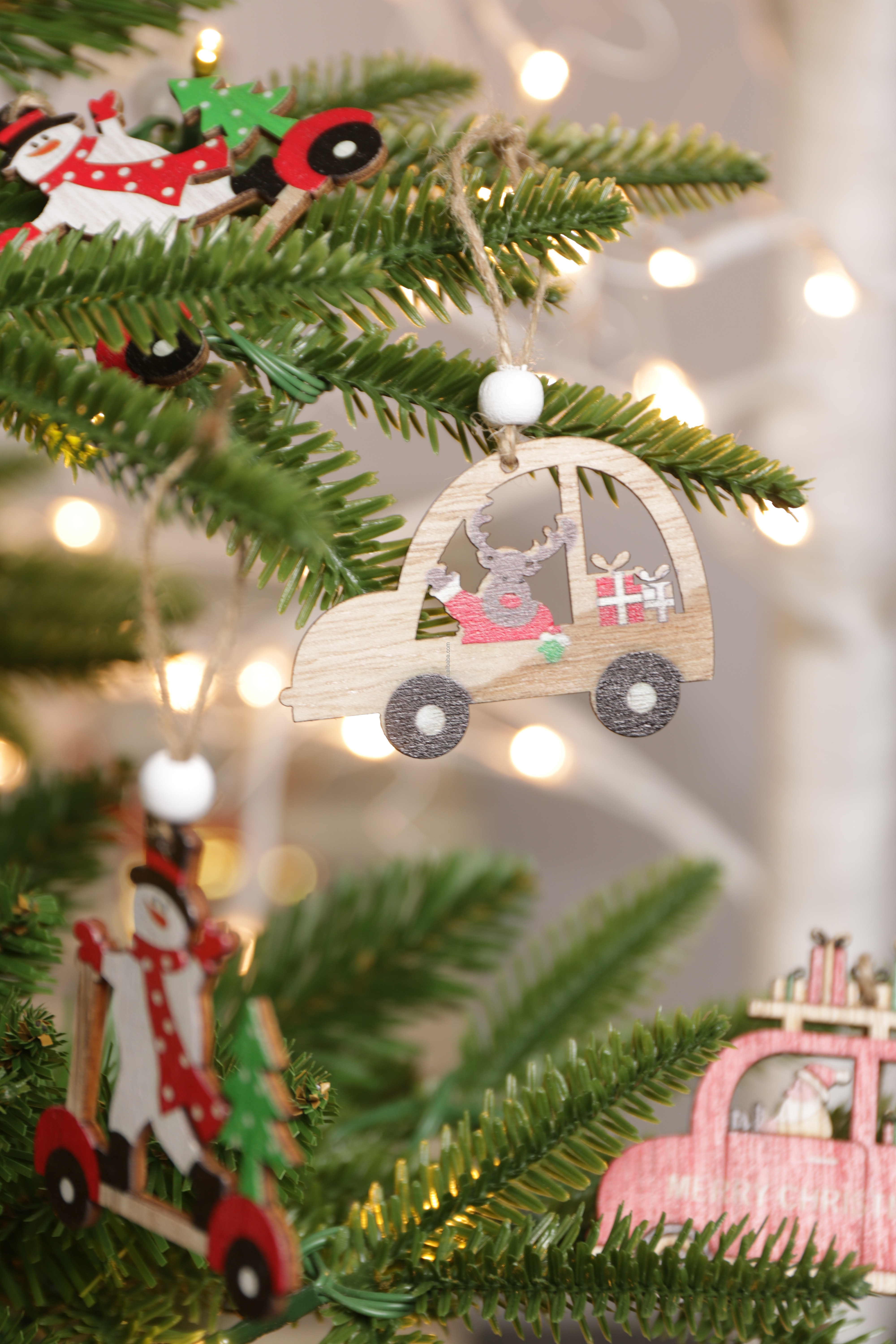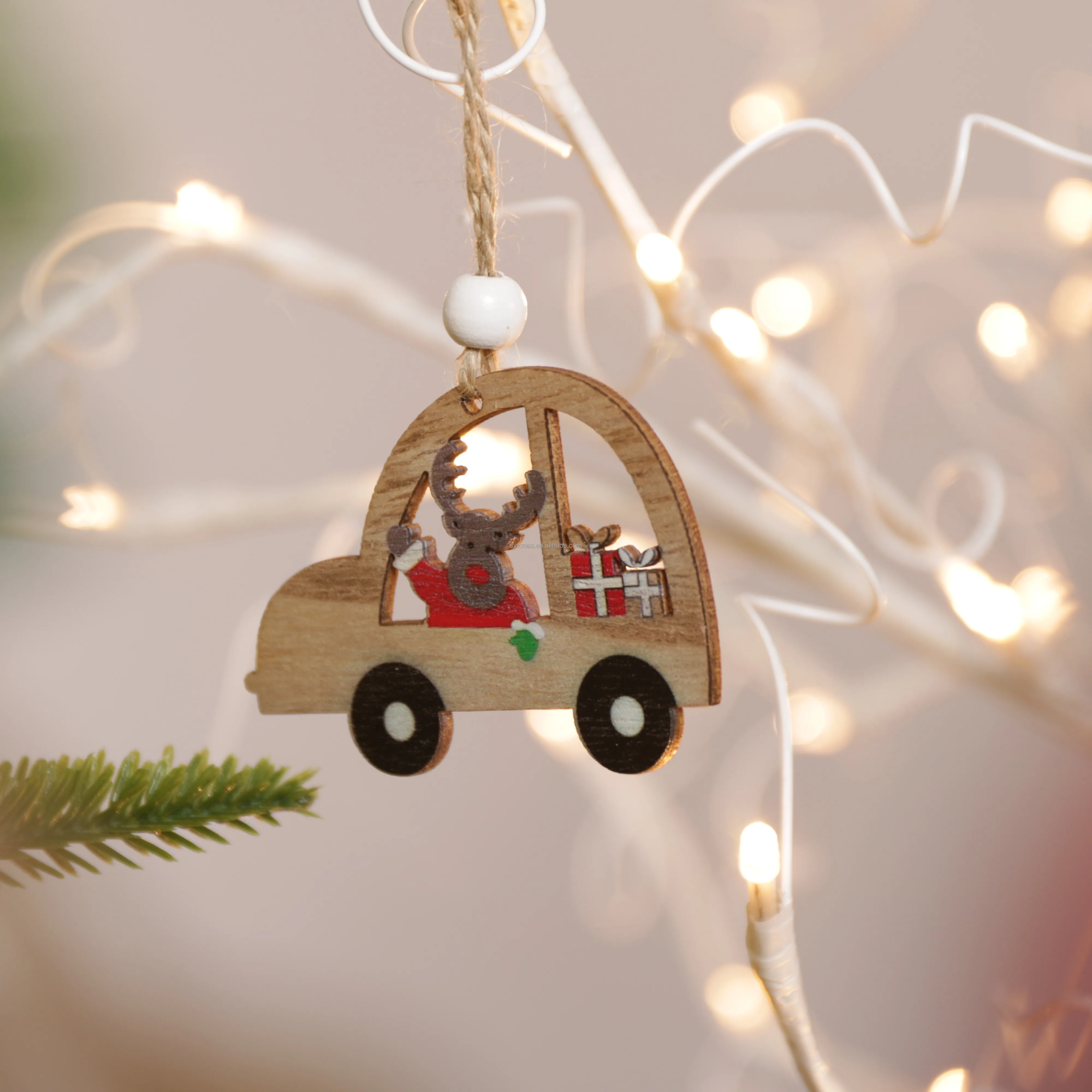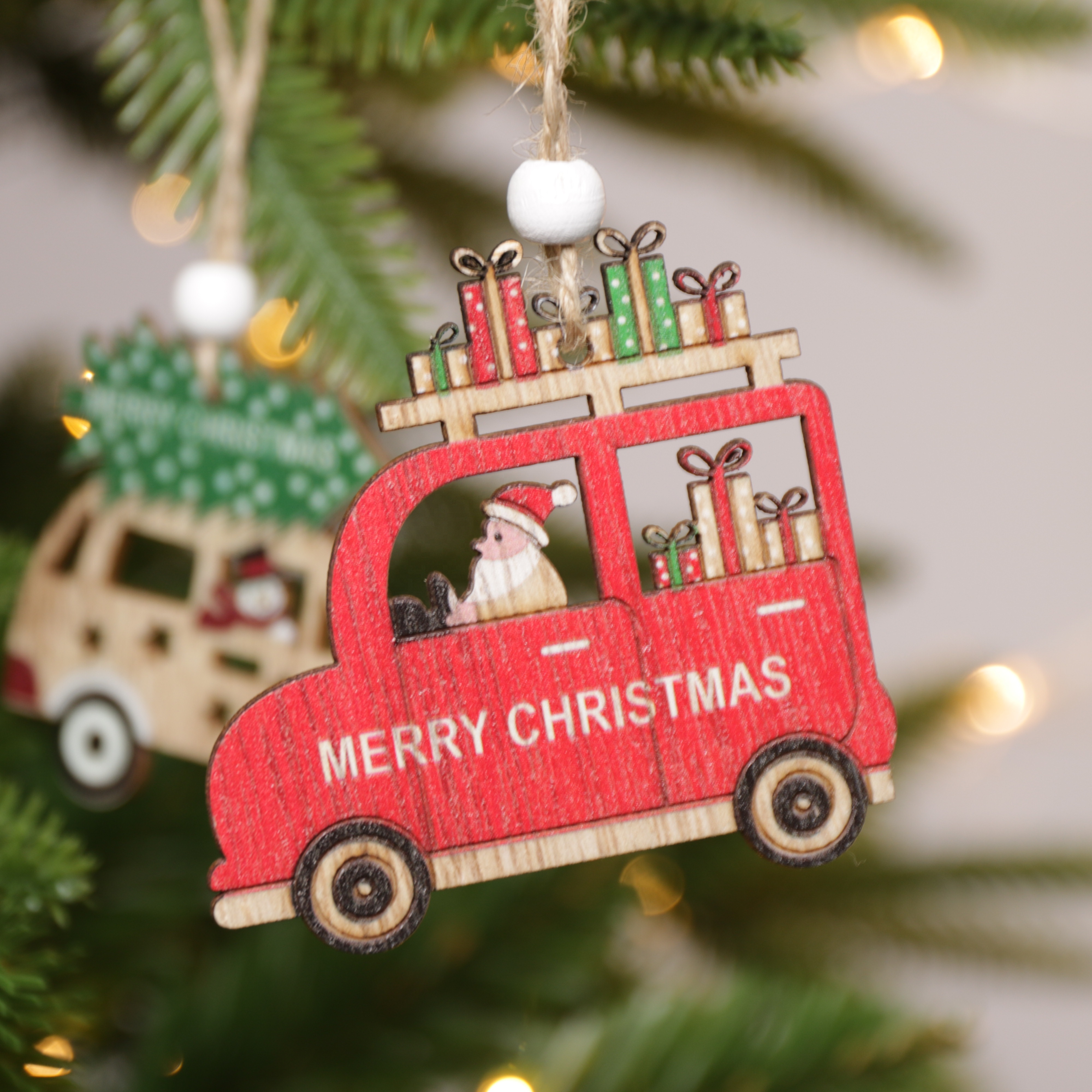 8cm Color painted Colorful Wooden Hanging Car Christmas Decoration for Christmas Tree