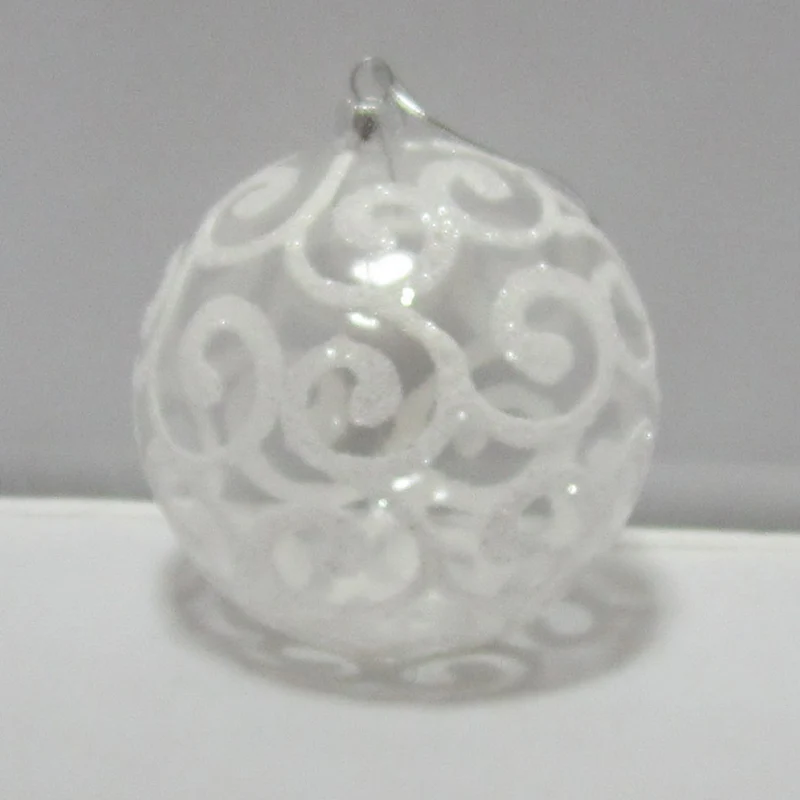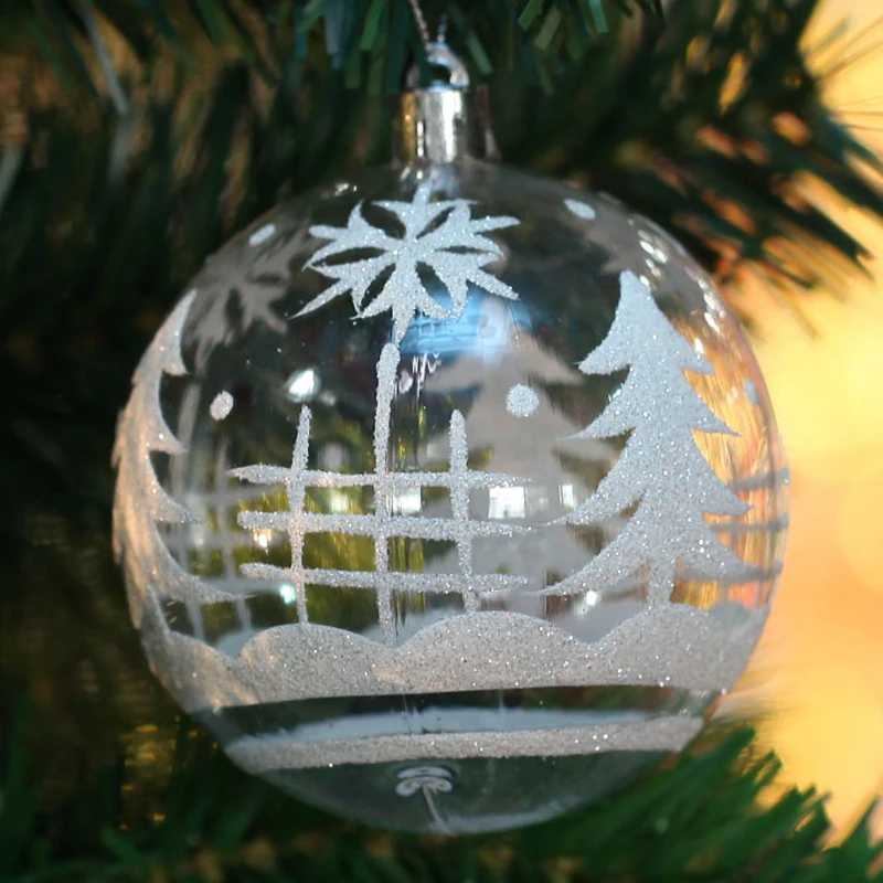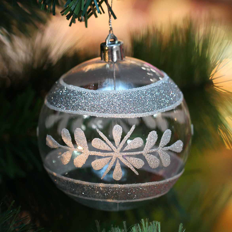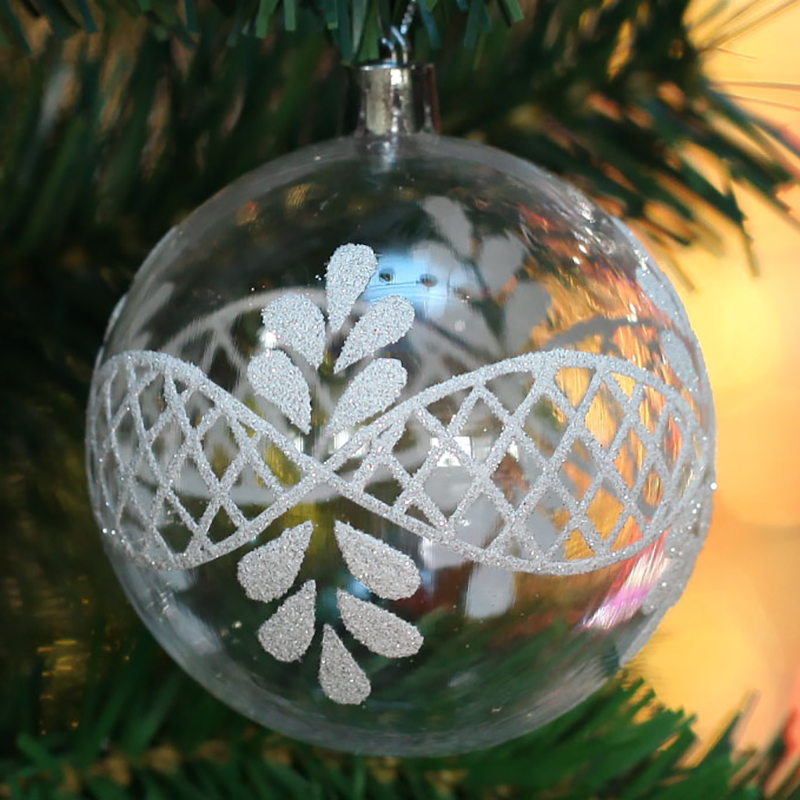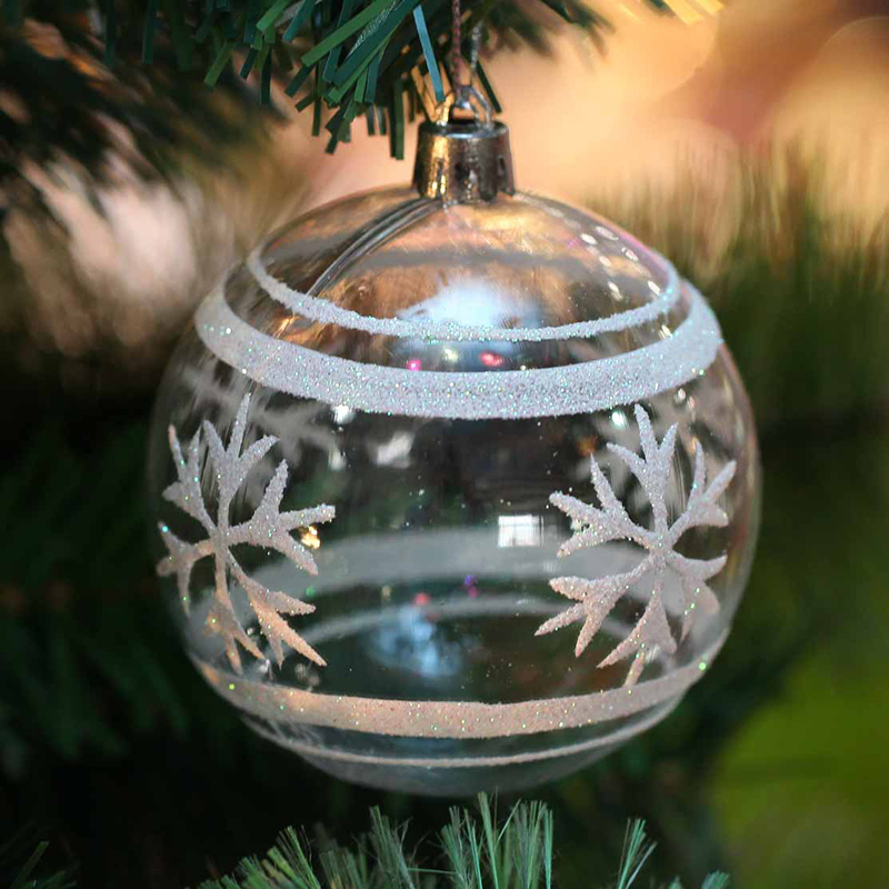 Amazon Christmas plastic balls decoration clear with white glitter 8cm Christmas ball