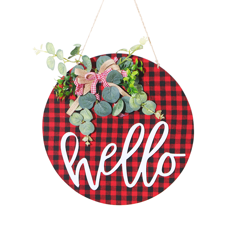 2022 New design wooden 30 cm Christmas decoration Red and Black Plaid wall hanging decorations Learn more