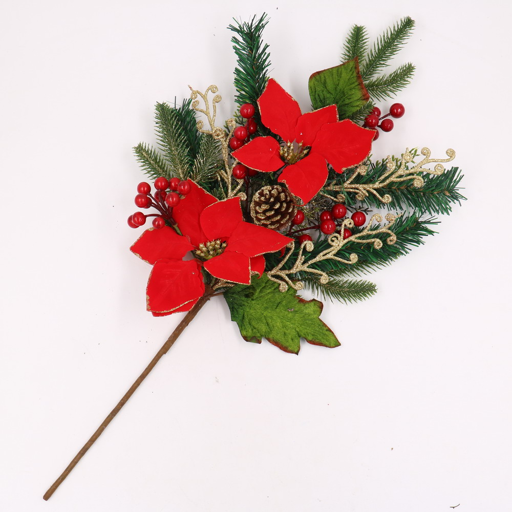 Artificial red flower Christmas Decorative cutting Christmas tree ornament branch