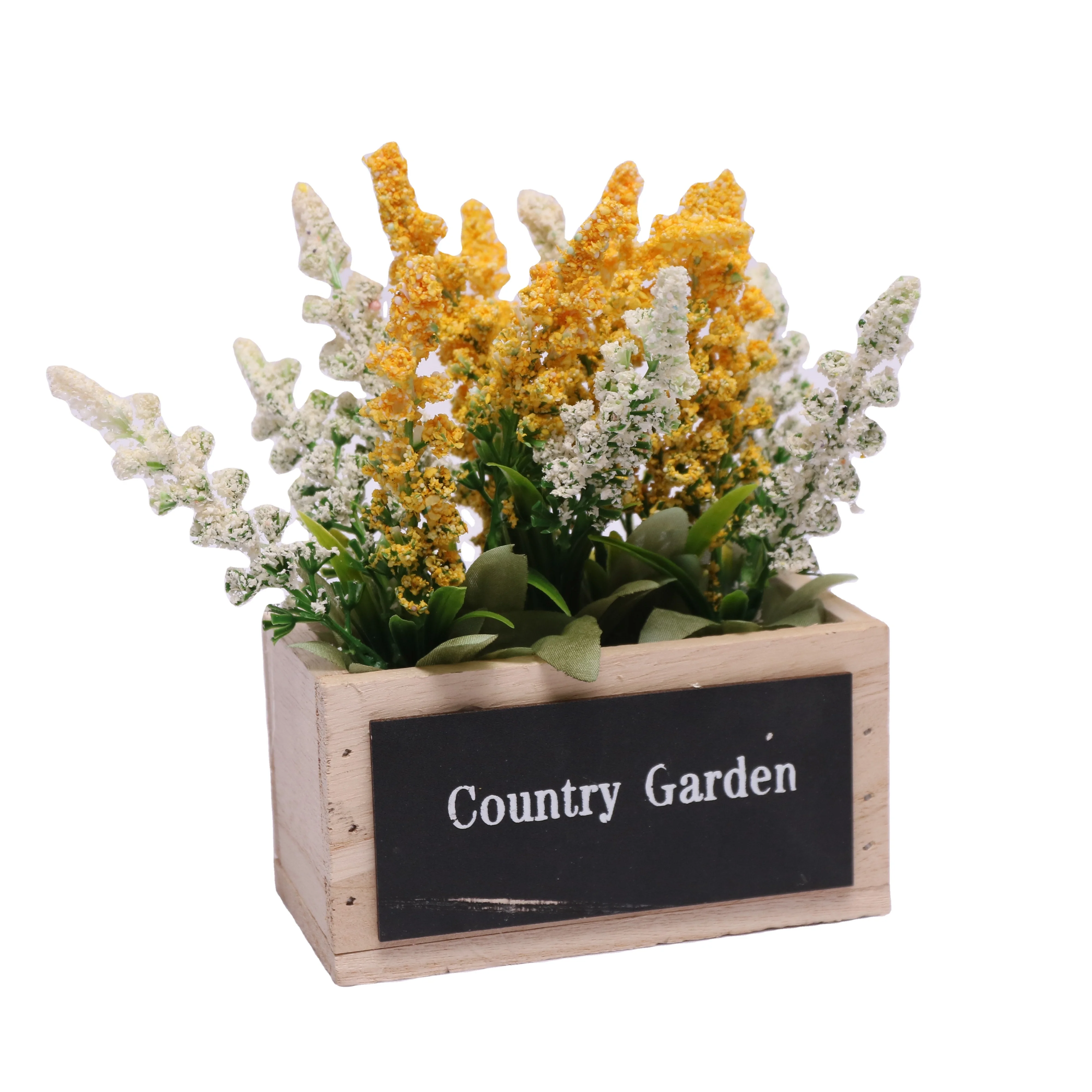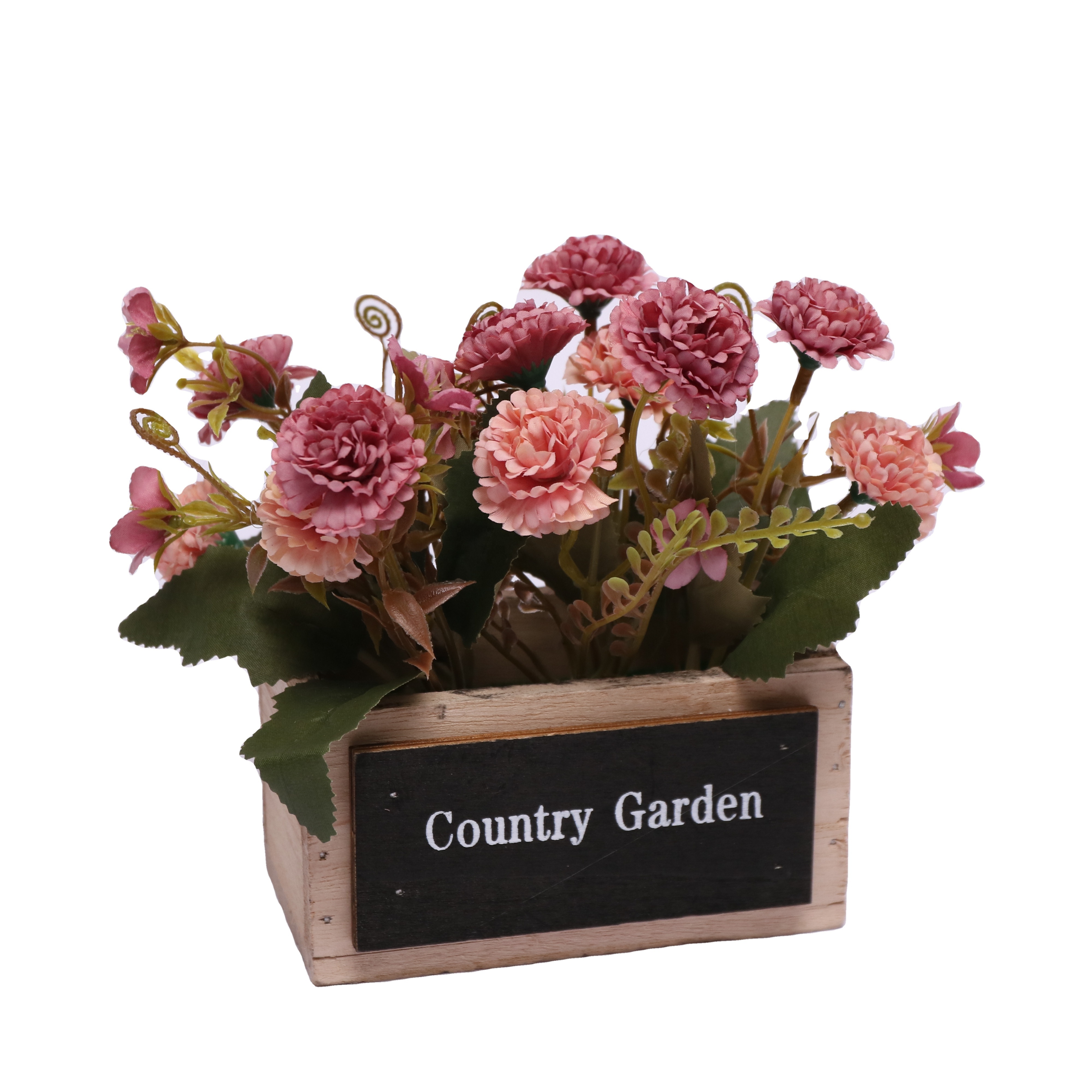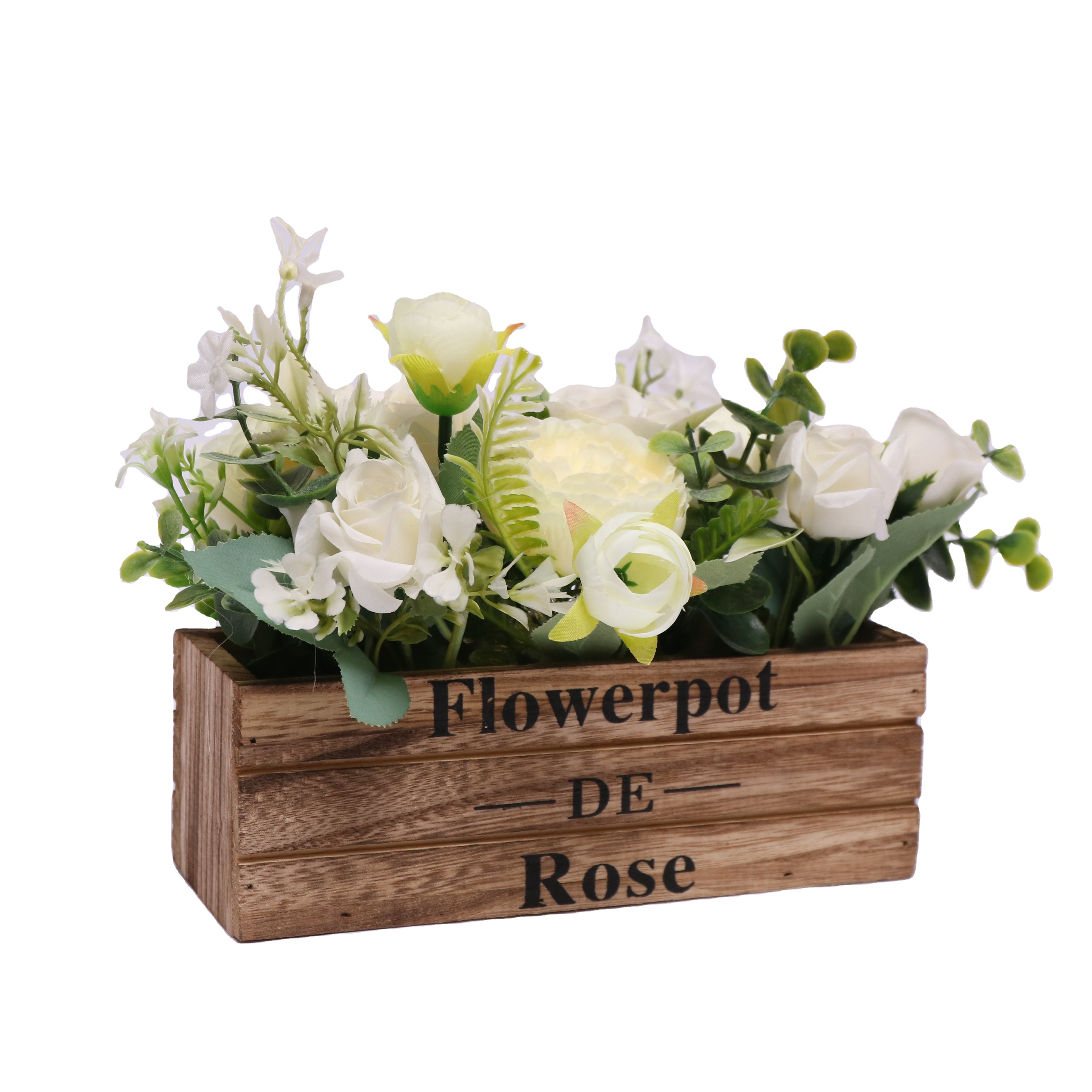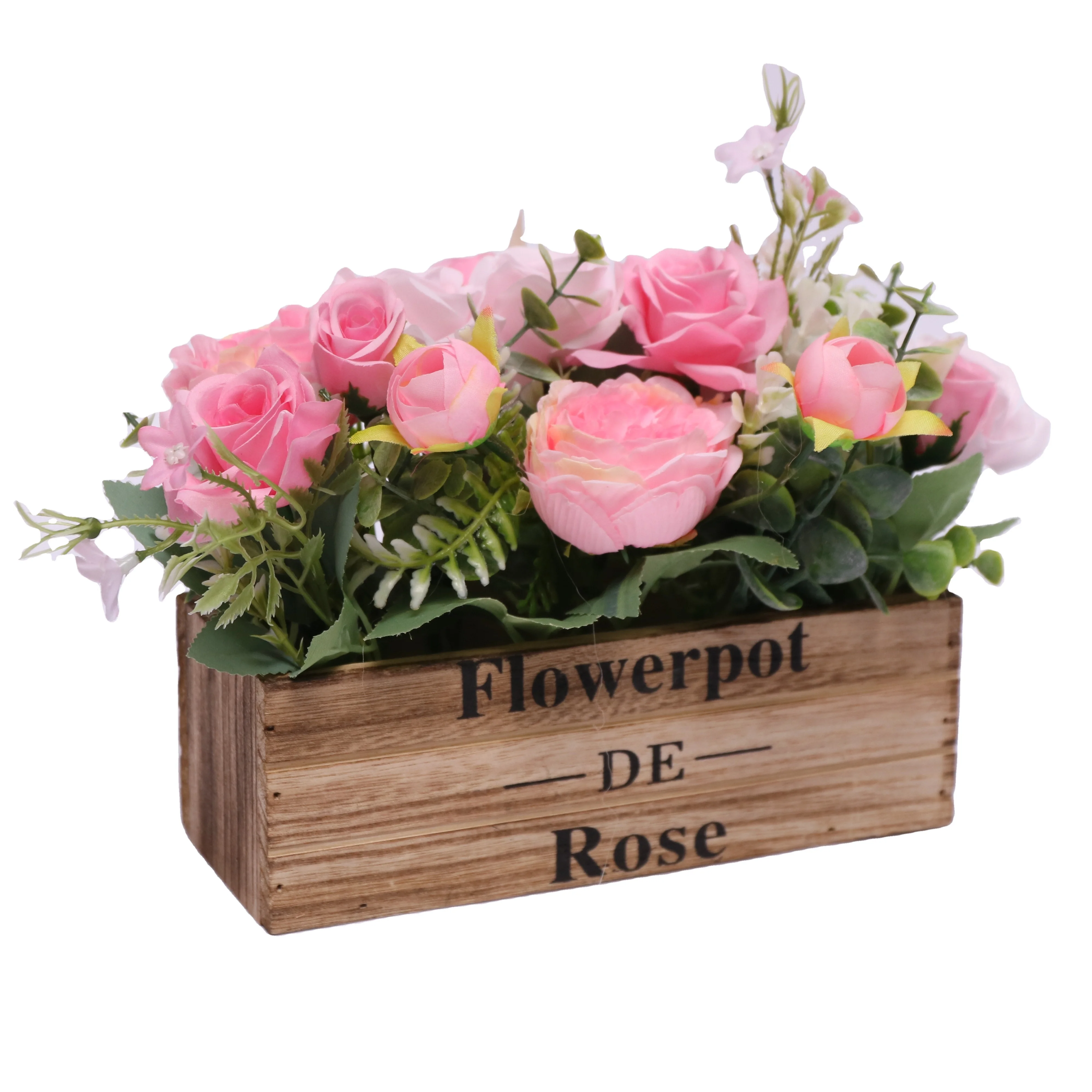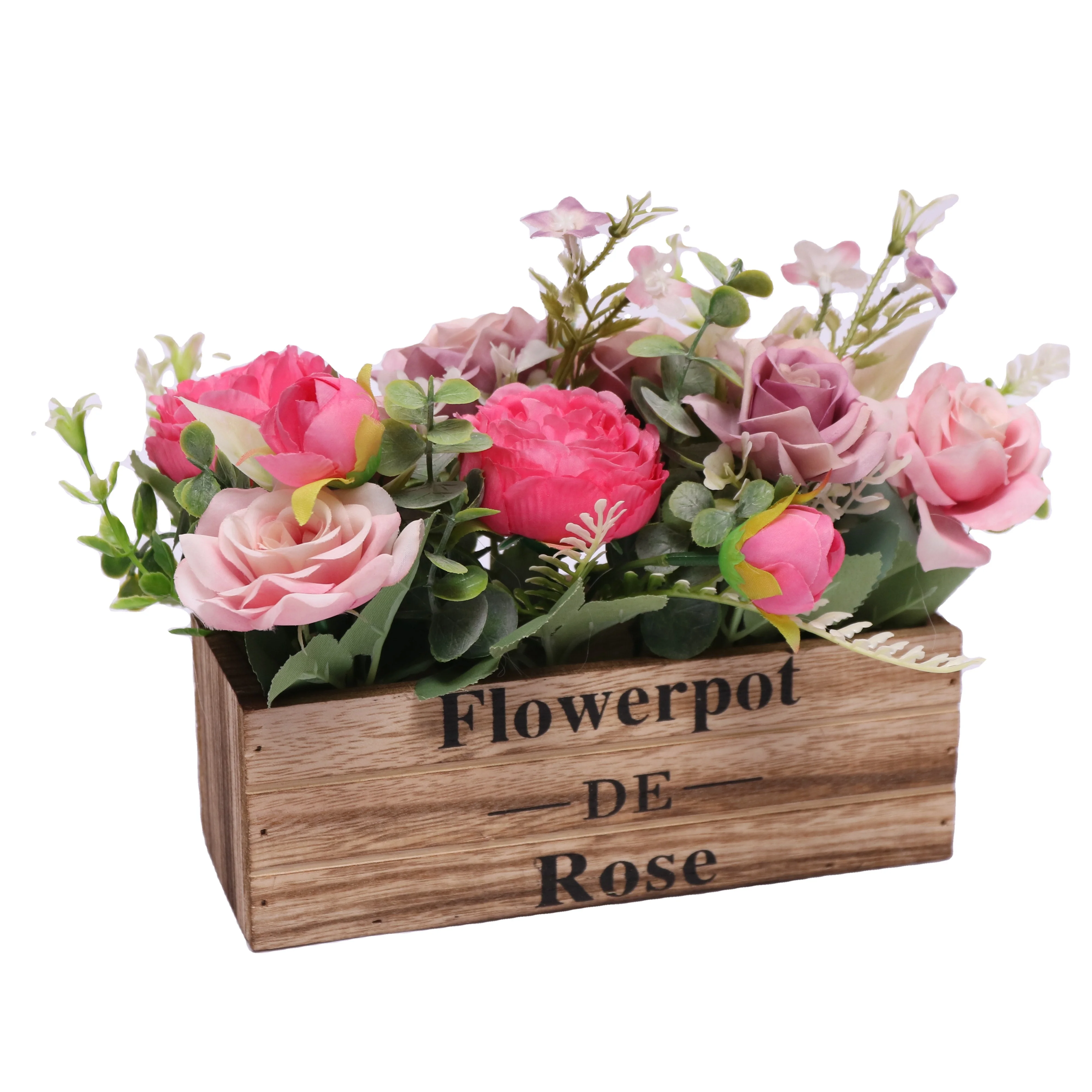 Artificial ROSE Flowers with wooden potted plant for Valentine's day/wedding decoration