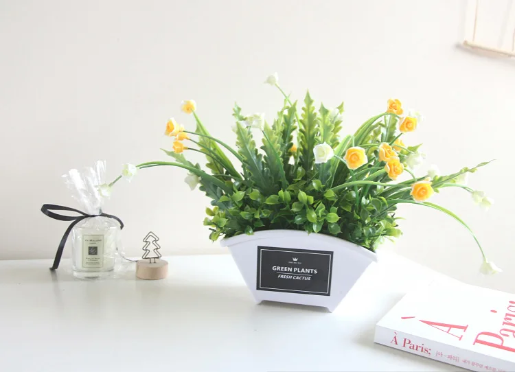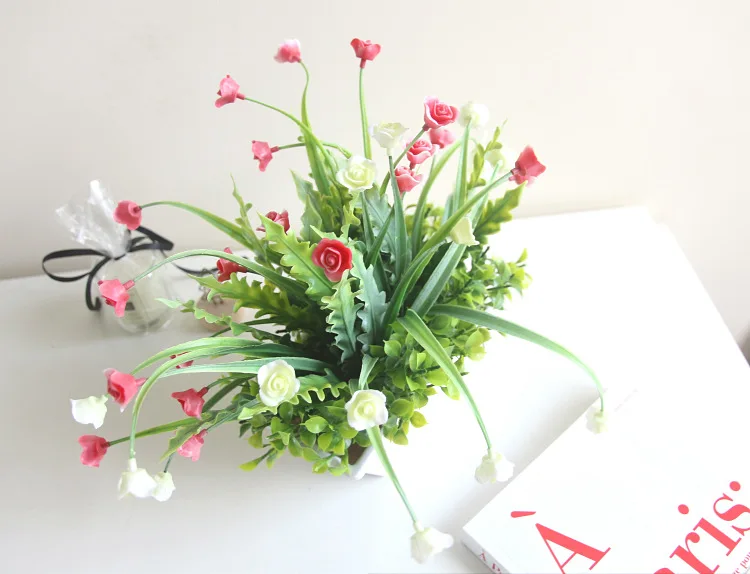 Artificial Rose grass Spring Grass Plant bonsai artificial flower plastic basket Home Decor Artificial Plant