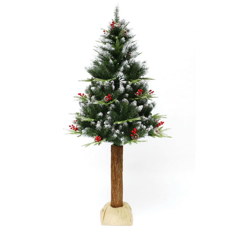 Custom 180CM 210CM PVC & PE Mixed wooden stick Christmas Tree with white glitter and red berry pine cone Party Home Decoration Learn more