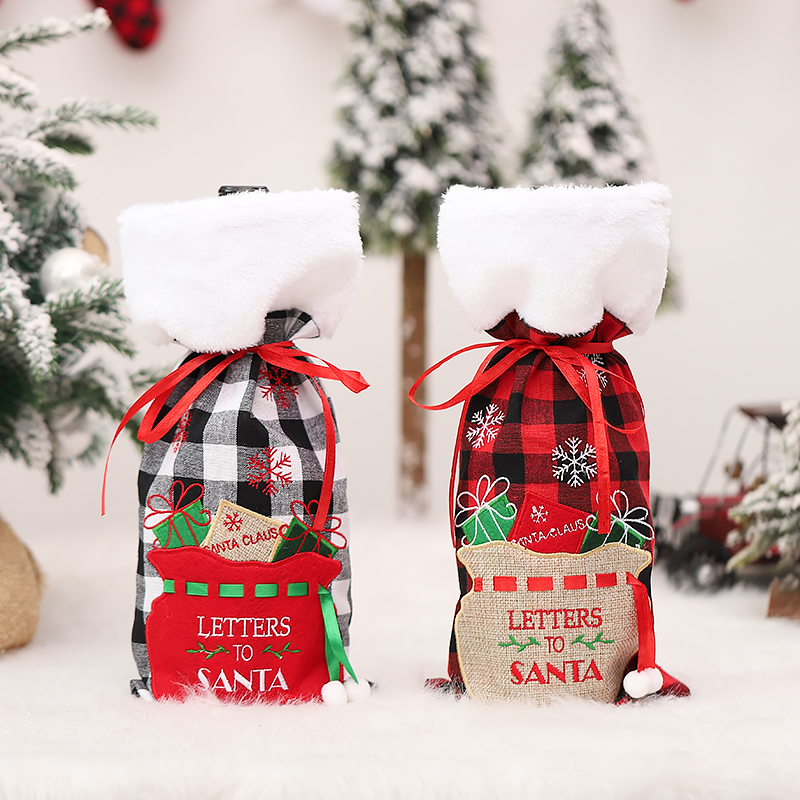 2022 Wholesale Eco-friendly Cotton Decorative Christmas wine bottle cover drawstring christmas bottle cover Learn more