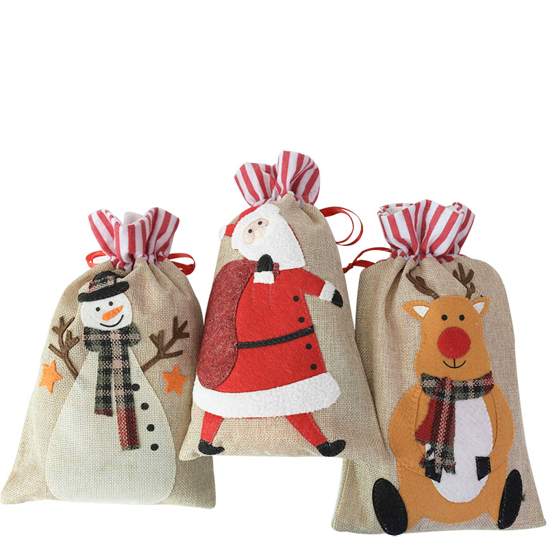 18*30cm Christmas Drawstring Bag Gift Bags Reusable Linen Gift Pouch Packaging Candy Bag for Xmas New Year Party Learn more