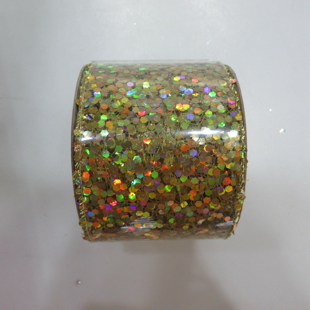 Christmas Mesh Ribbon with full gold paillette for Christmas gifts Wrapping