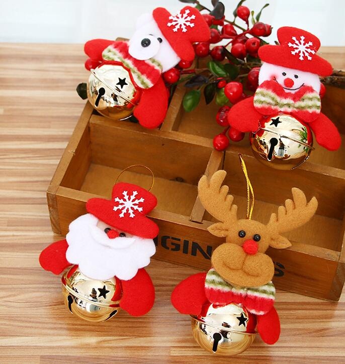 Christmas shiny hanging metal jingle bells decorated with doll deer