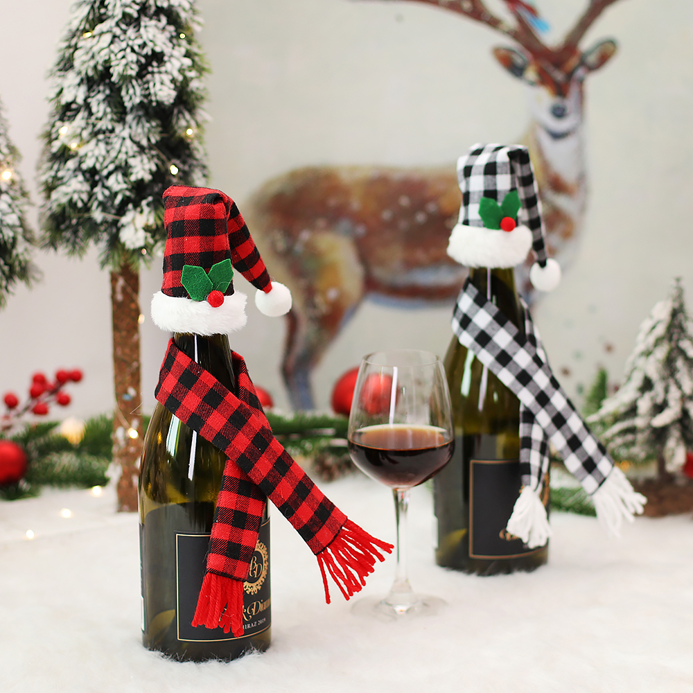 Christmas Wine Bottle Cover Bag Decor Christmas Gift Ornaments Christmas wine hat wine scarf
