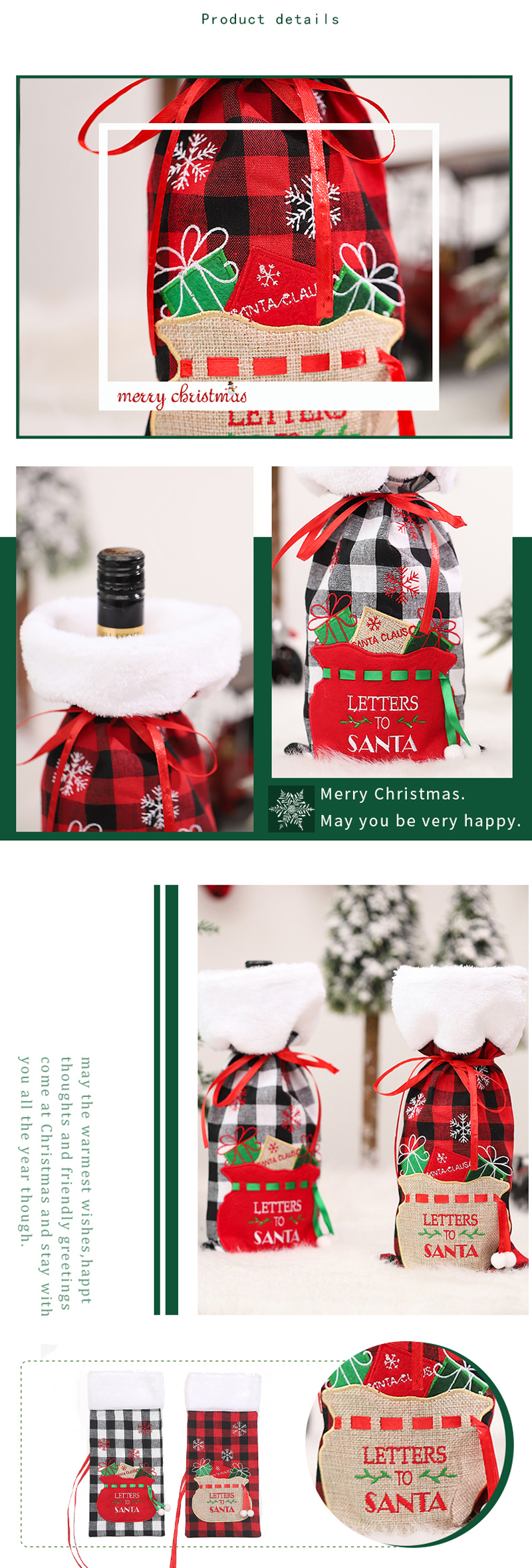 | Material: | Burlap, Polyester | Name: | Christmas wine bottle gift bags |