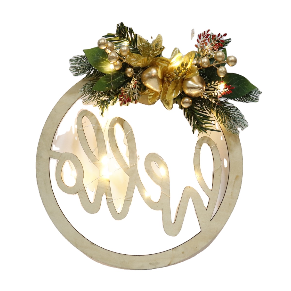 30 CM wooden hanging wreath decoration with light & gold berry gold boll& fabric flower Outdoor Christmas home decoration Learn more