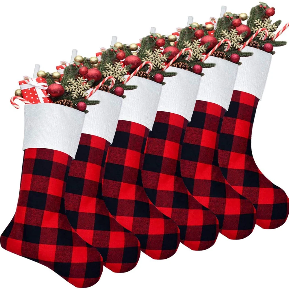 Classic Buffalo Plaid Design Traditional Christmas Stocking Hanging Fireplace/ Christmas Decoration