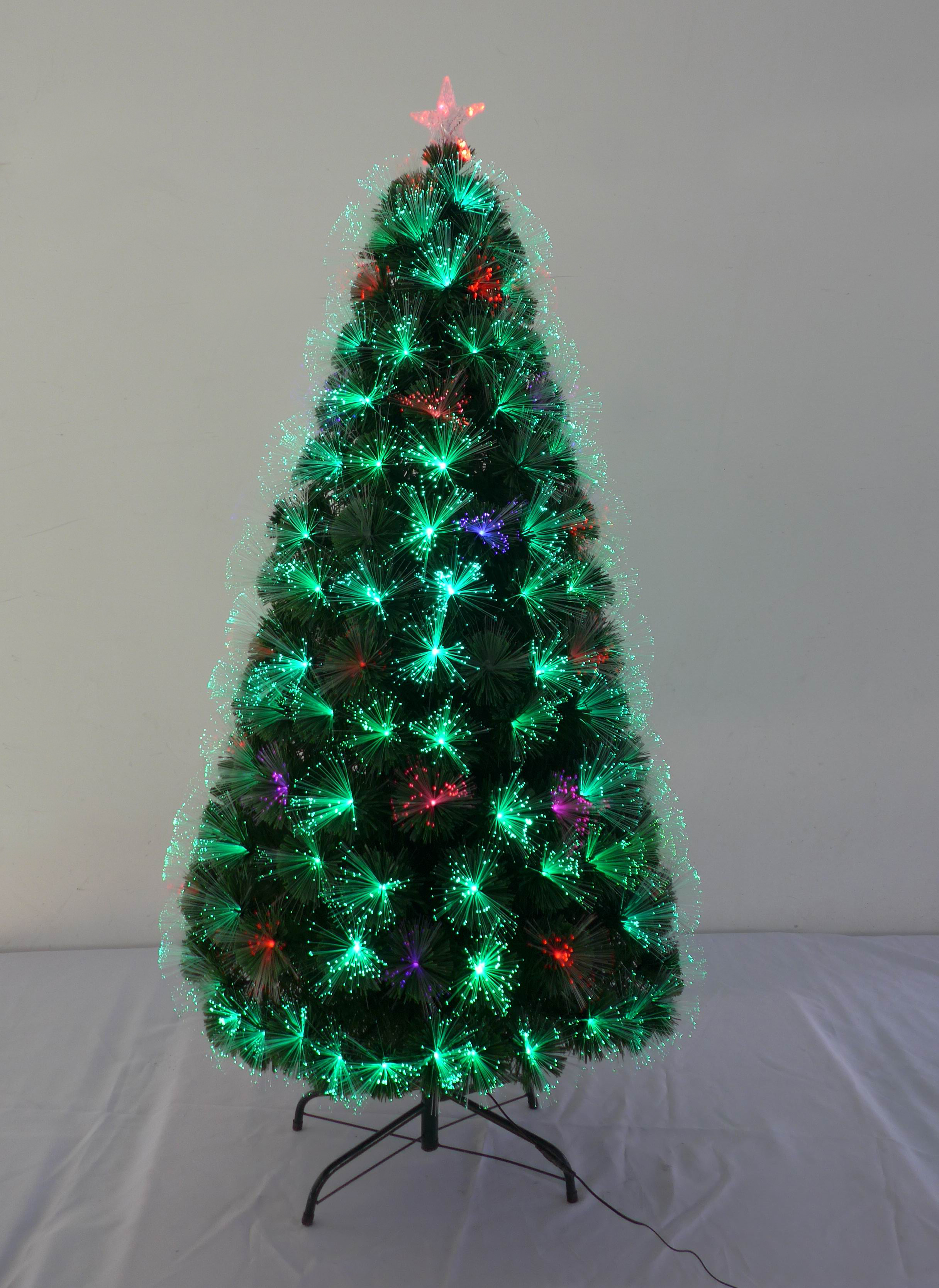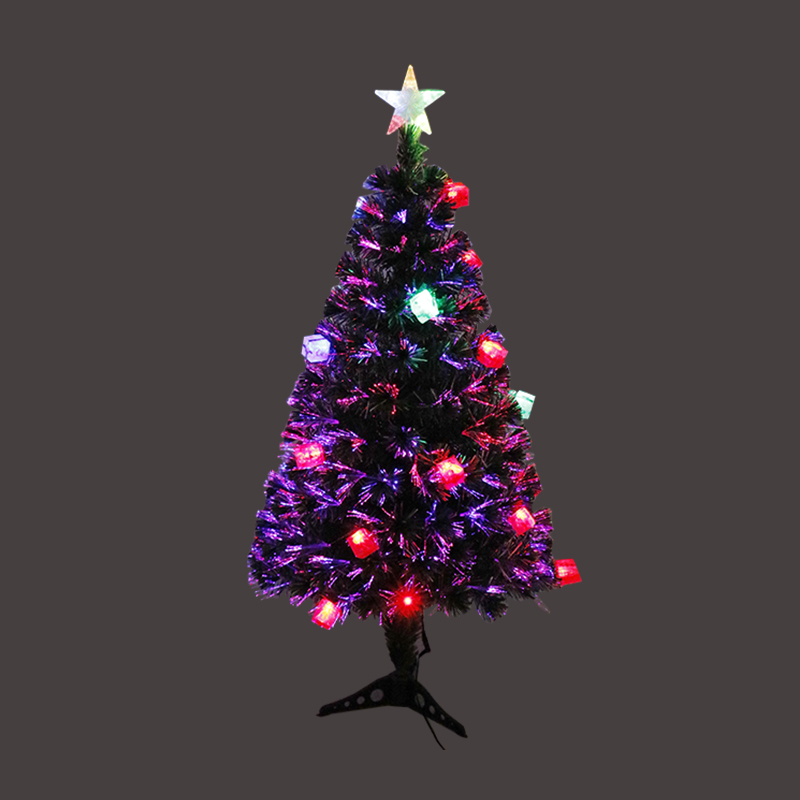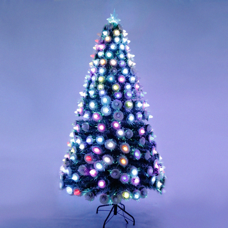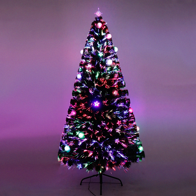 colorful Fiber Optic Christmas Tree with top star and mixed Decor for festival Decoration