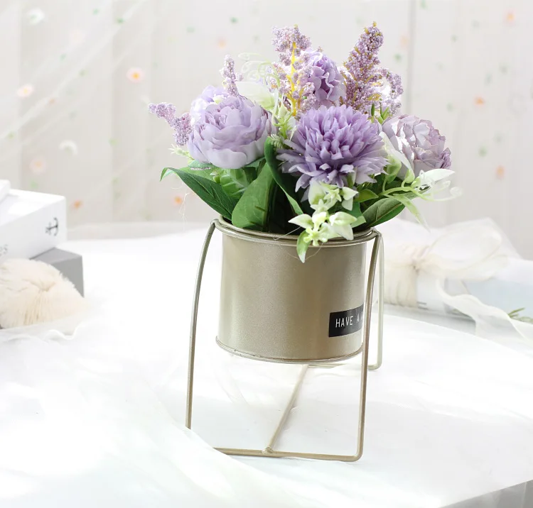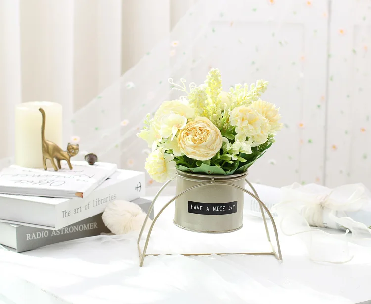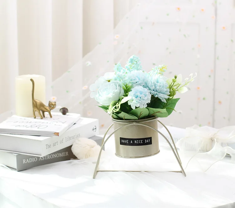 Creative Hydrangea Flower Bouquet Pot With Iron Basket For Home Wedding Decoration Hydrangea
