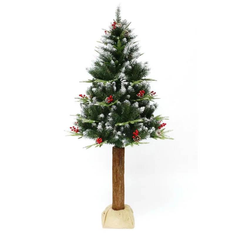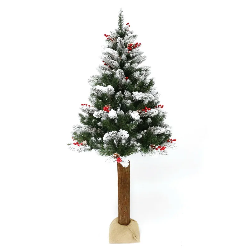 Custom 180CM 210CM PVC & PE Mixed wooden stick Christmas Tree with white glitter and red berry pine cone Party Home Decoration