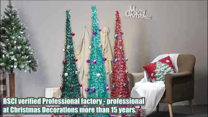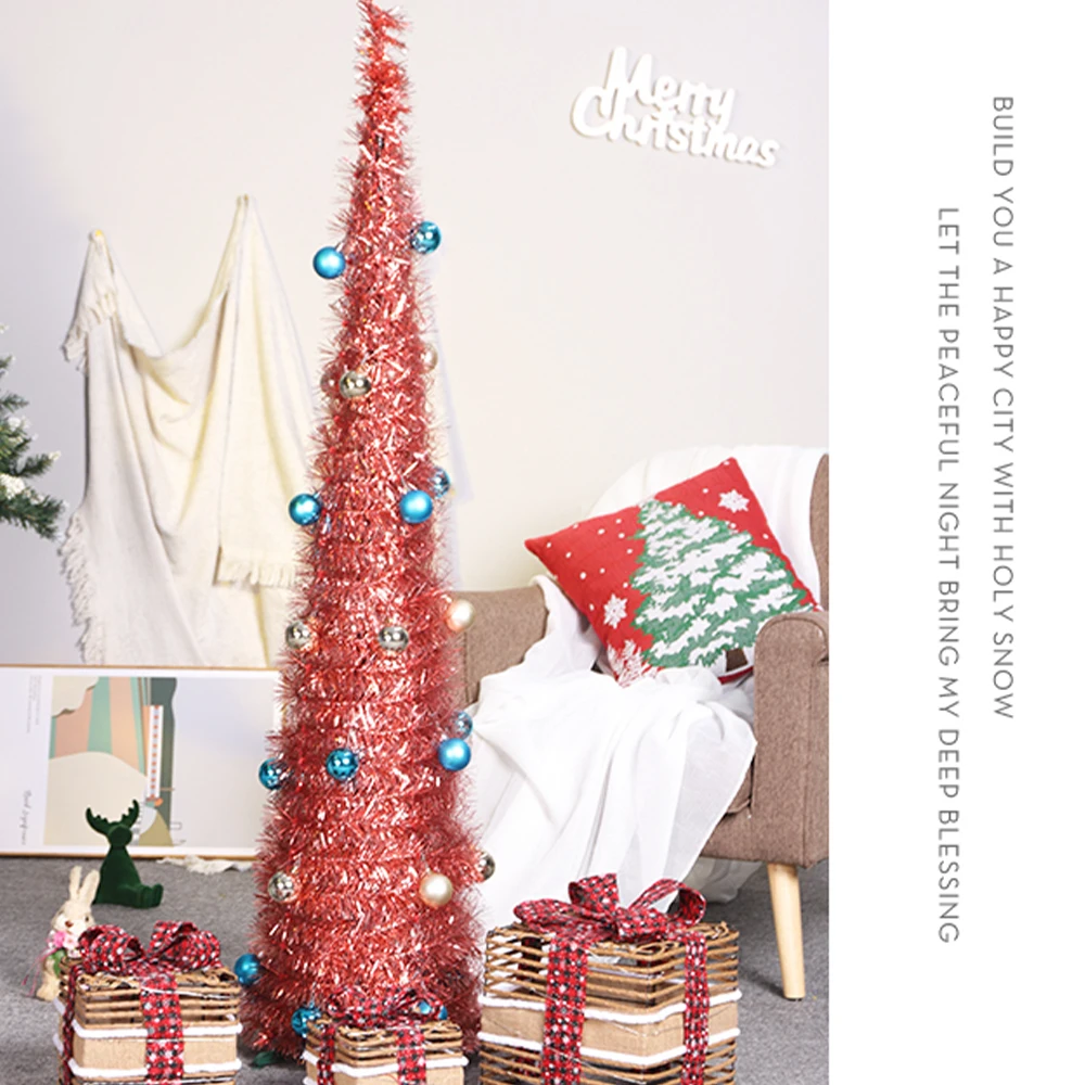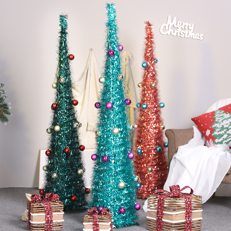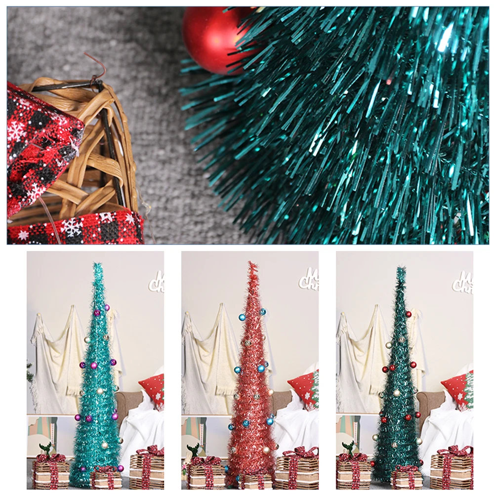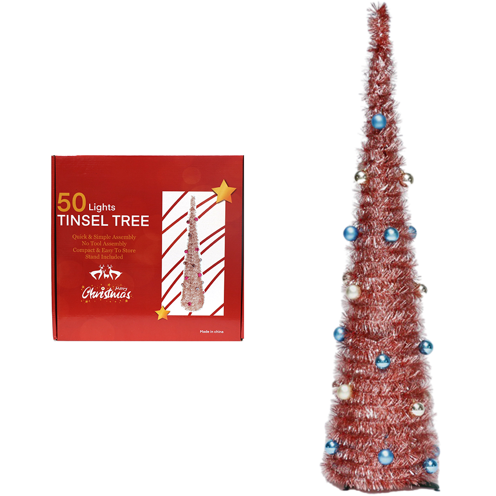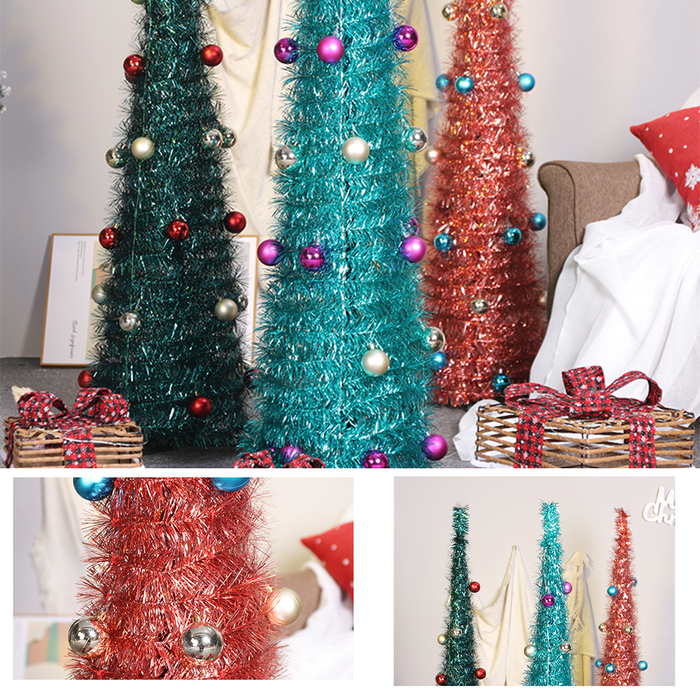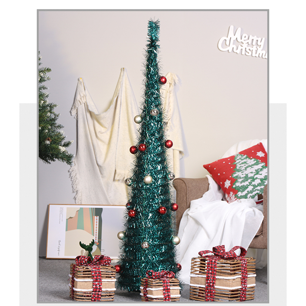 Decorative Artificial Tinsel Pop up Christmas Tree with Stand Collapsible Artificial Christmas Tree