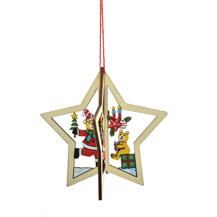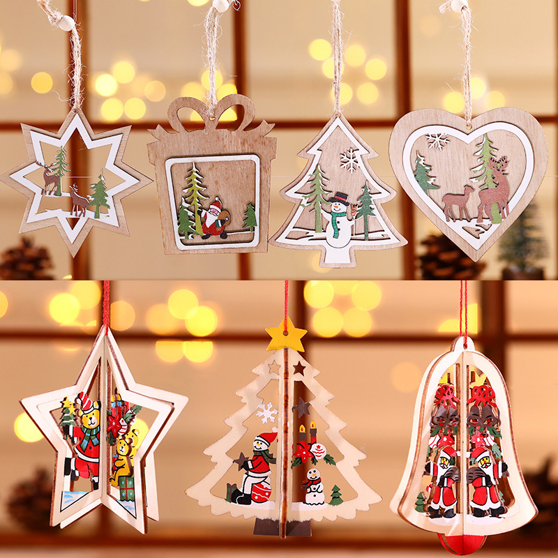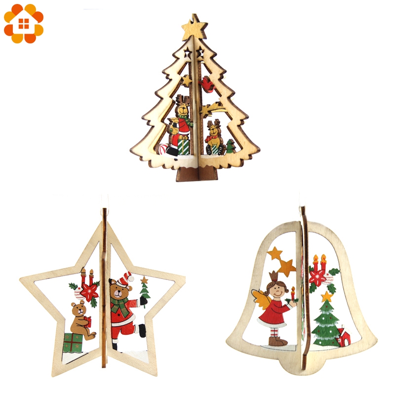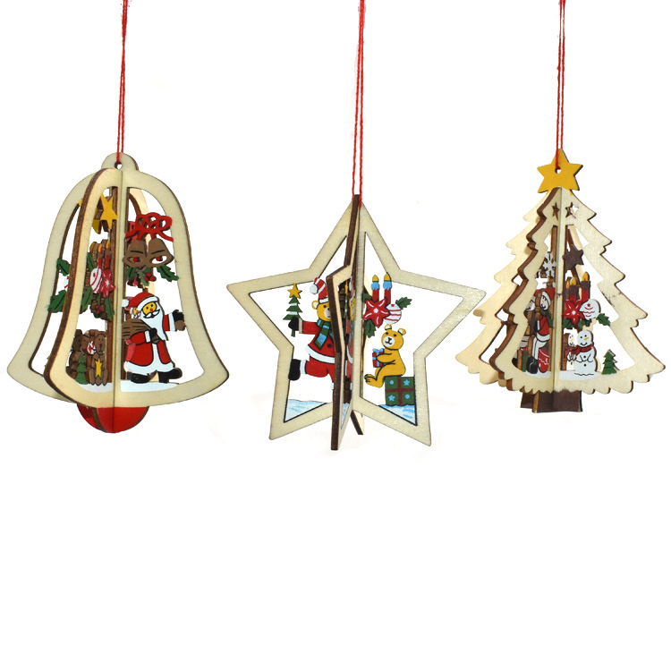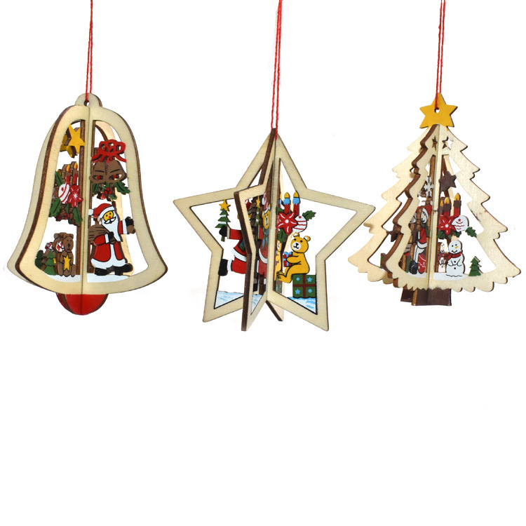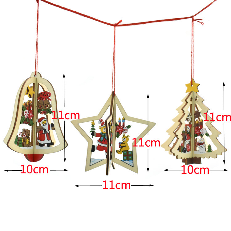 DIY 3D Creative-Star-Bell-Tree-Christmas Wooden Pendants Ornaments