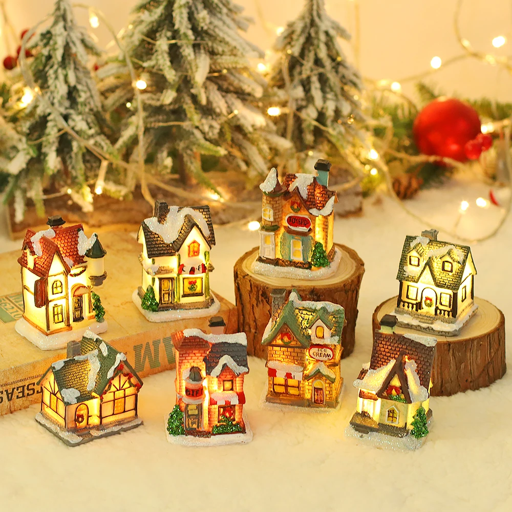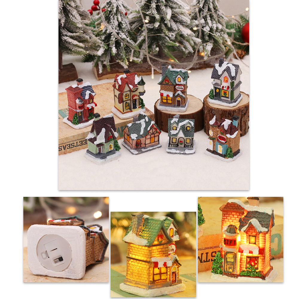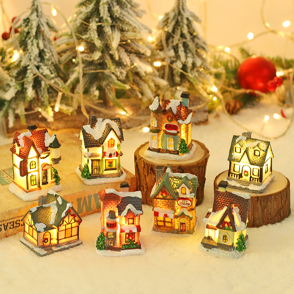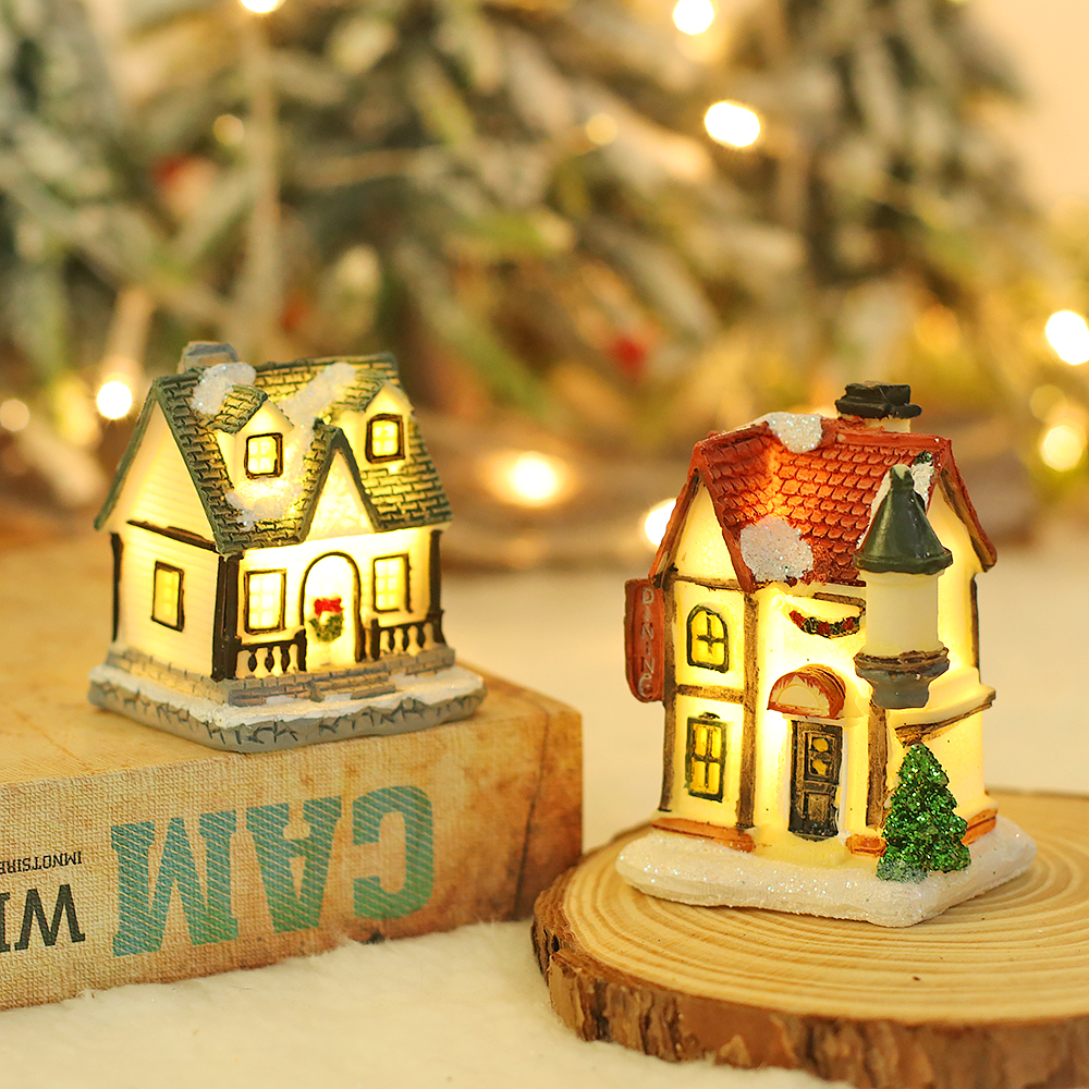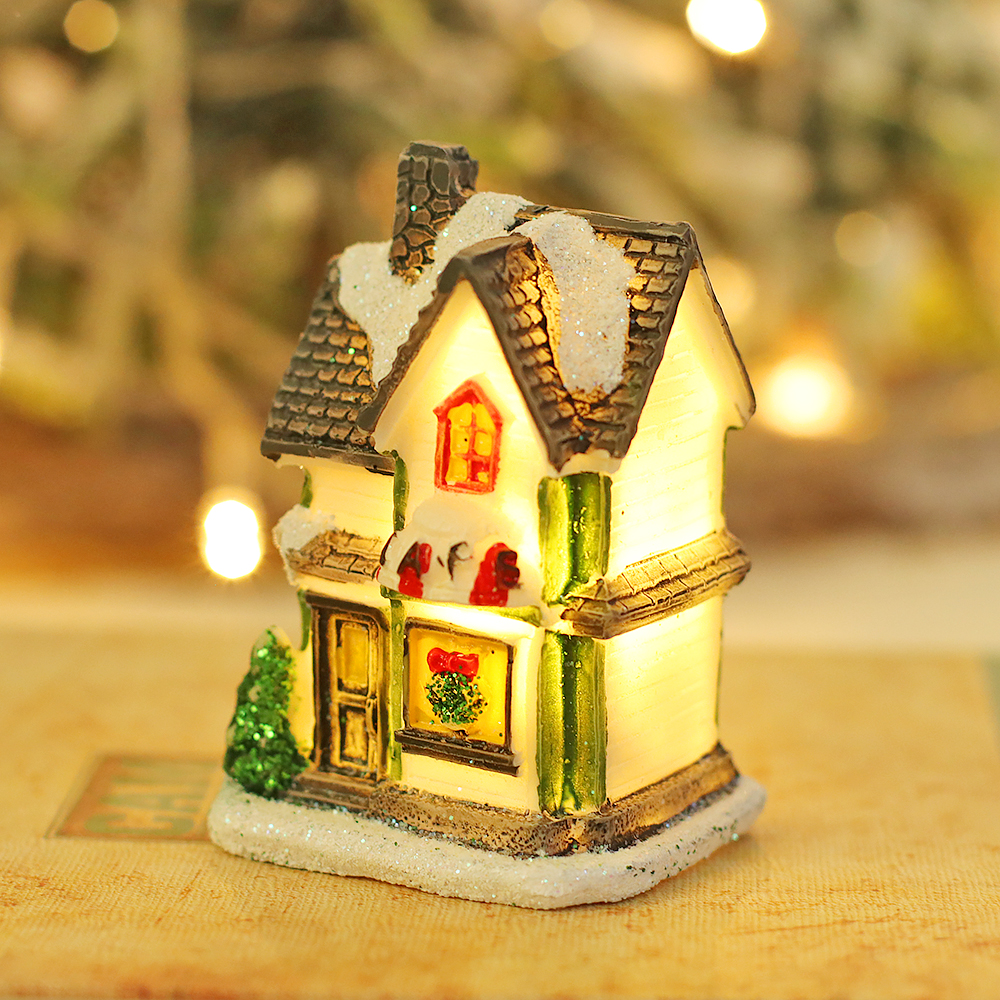 European style LED light polyresin snow house Christmas table decoration home decoration statues