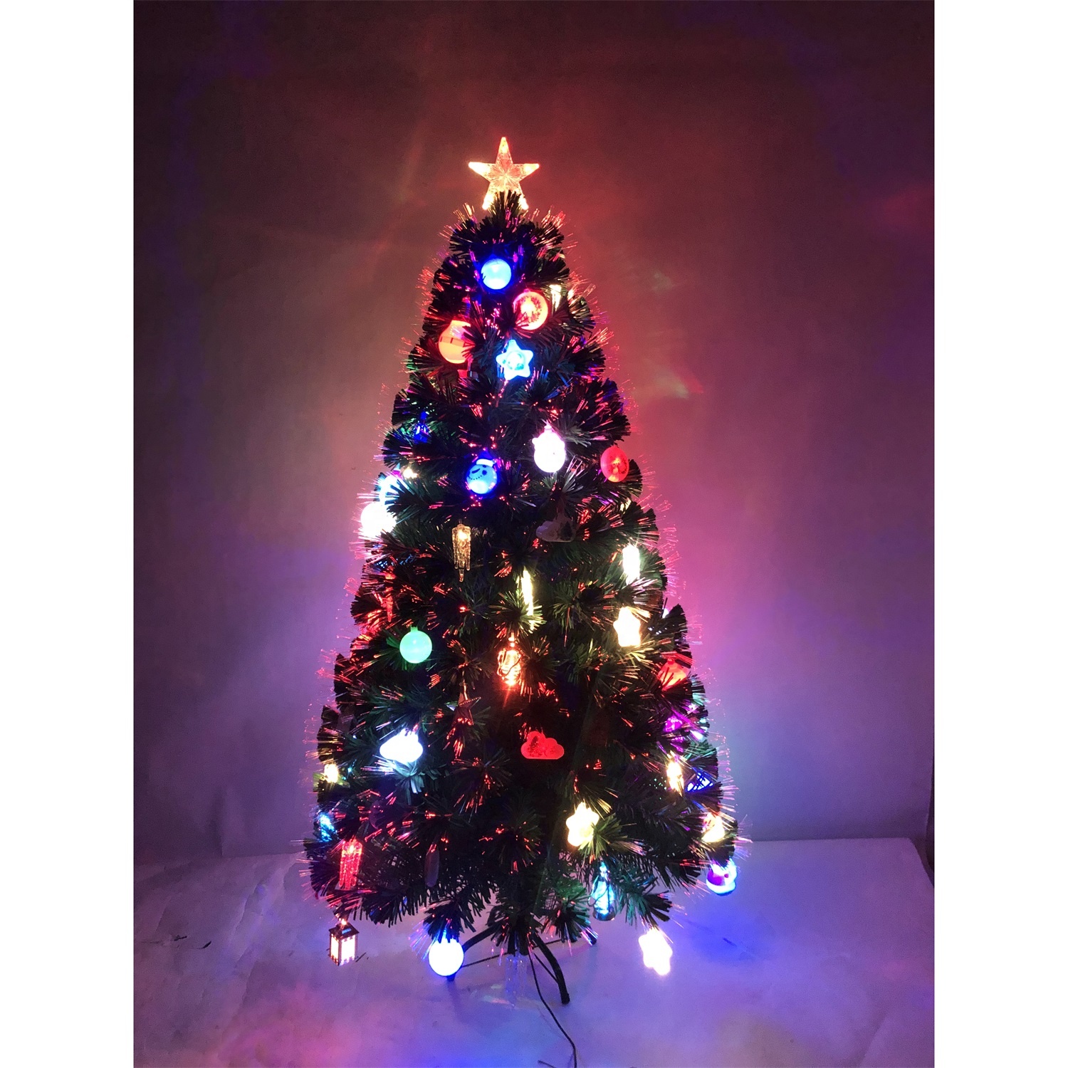colorful Fiber Optic Christmas Tree with top star and mixed Decor for festival Decoration Learn more