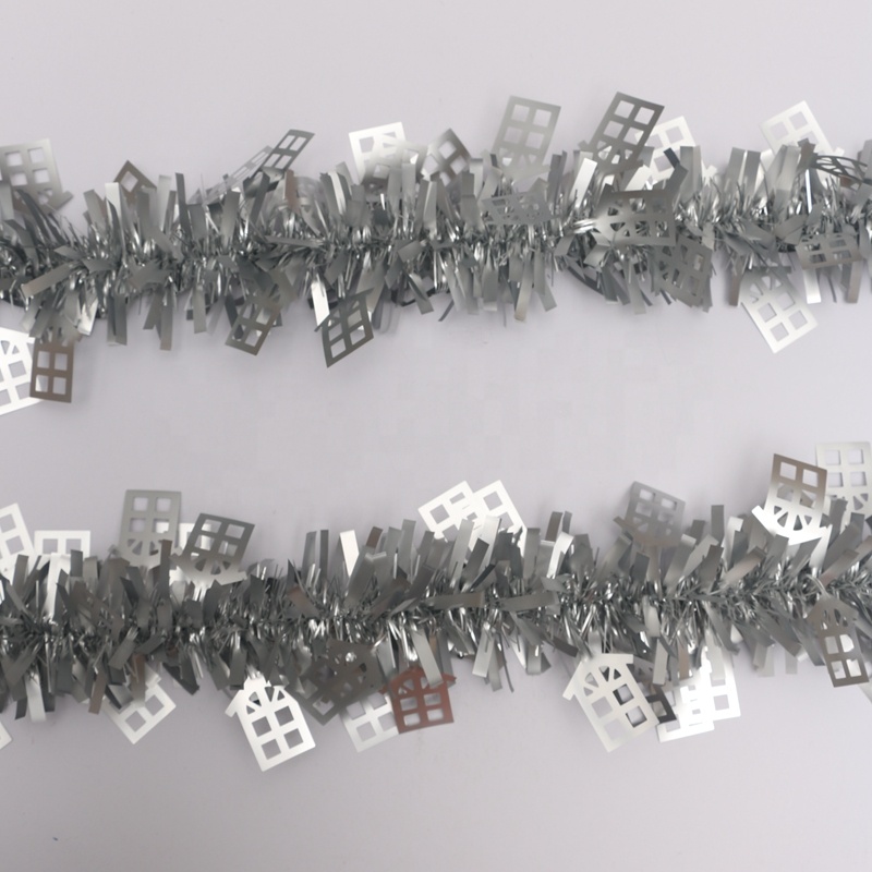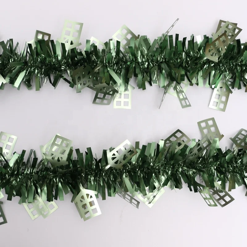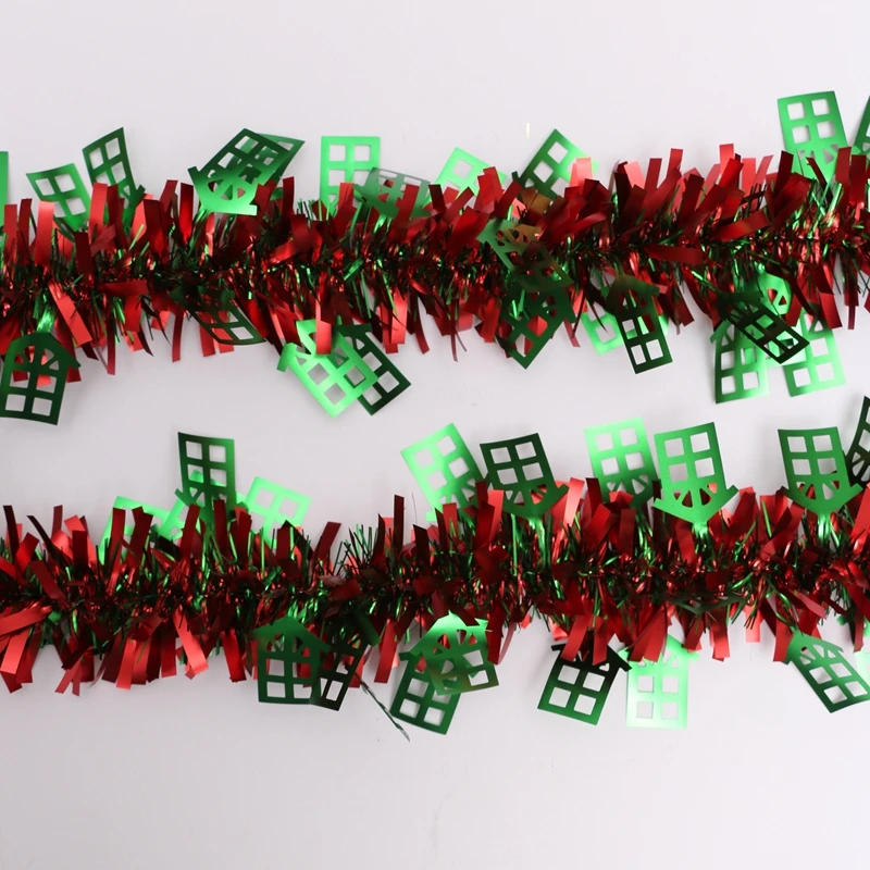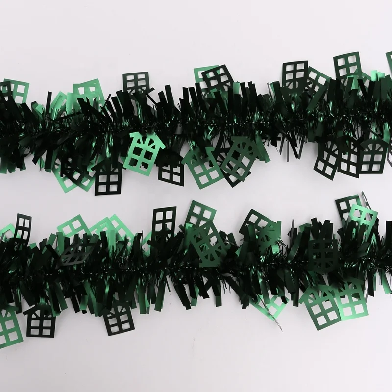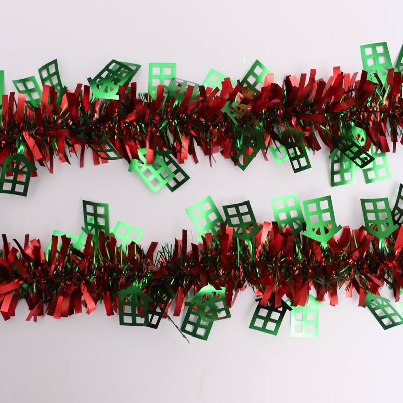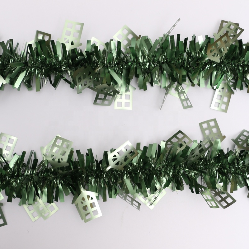Green tinsel with house shape ornament Christmas Tinsel Garland for Christmas decoration Happy New year