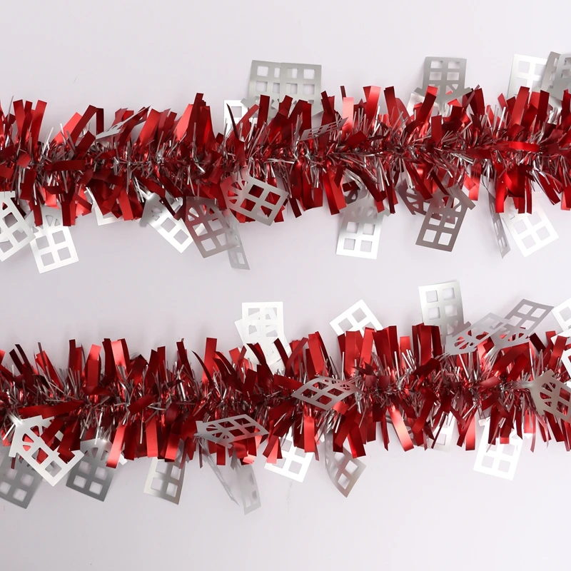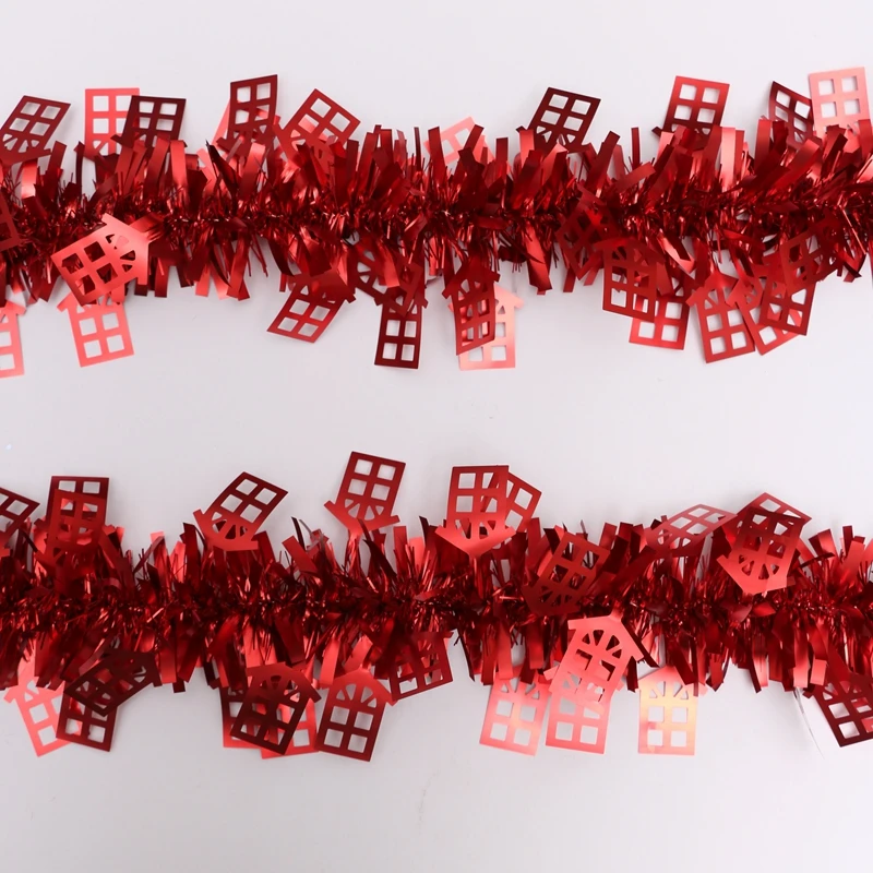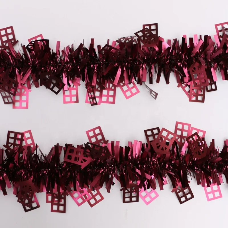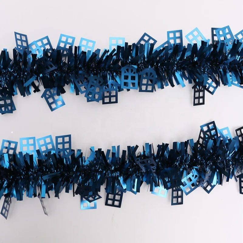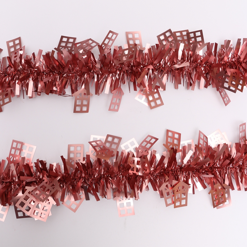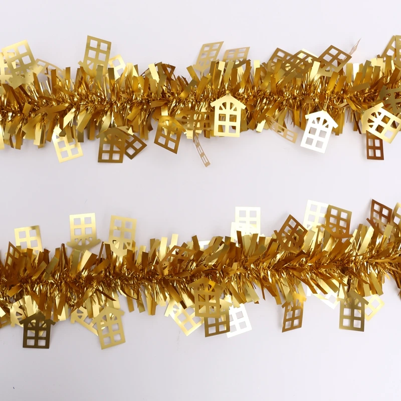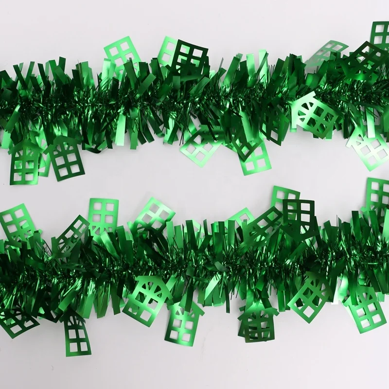 Green tinsel with house shape ornament Christmas Tinsel Garland for Christmas decoration Happy New year