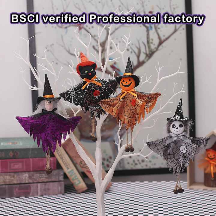 Halloween Pumpkin witch white ghost black cat dress bell doll pendant Decor Props Party Scary Prop Halloween Decoration