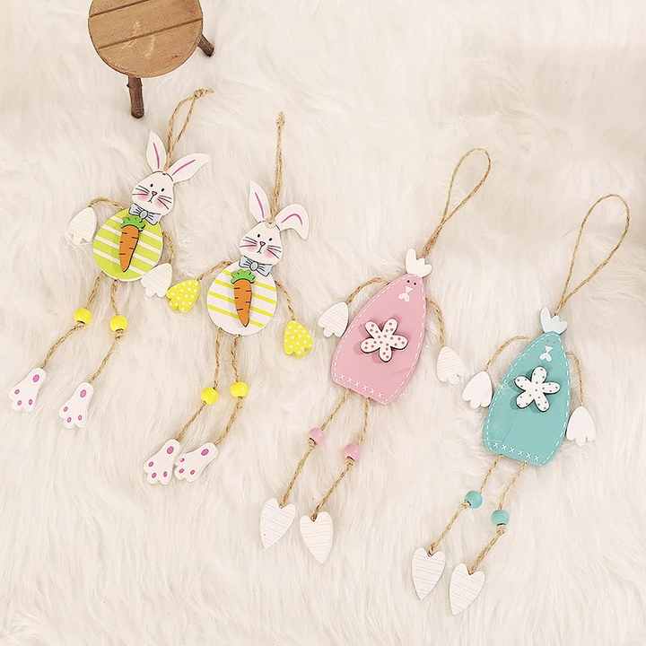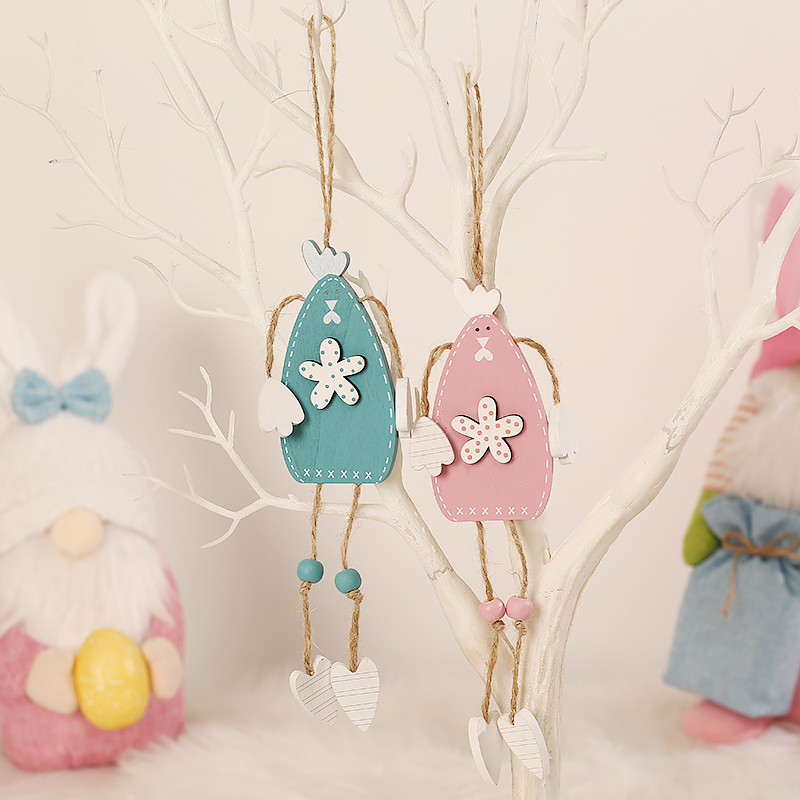 Happy Easter Decoration Wooden Easter ] Chicken Pendant Craft DIY Hanging Ornament Mini Easter Wooden Decoration