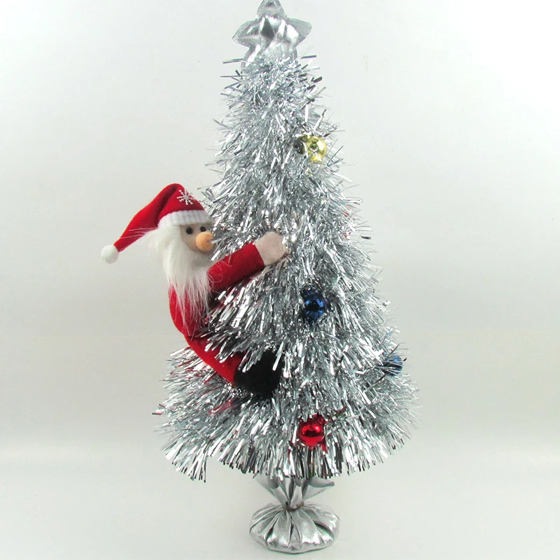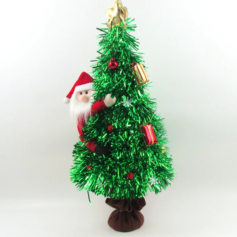 High Quality New Design PET tinsel decorated mini tree with cement stand Christmas table decorated tree