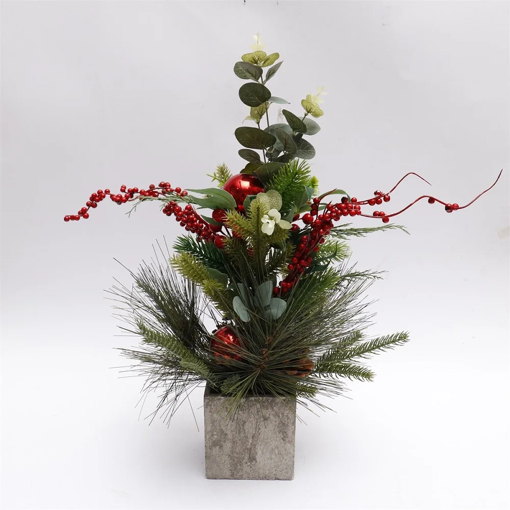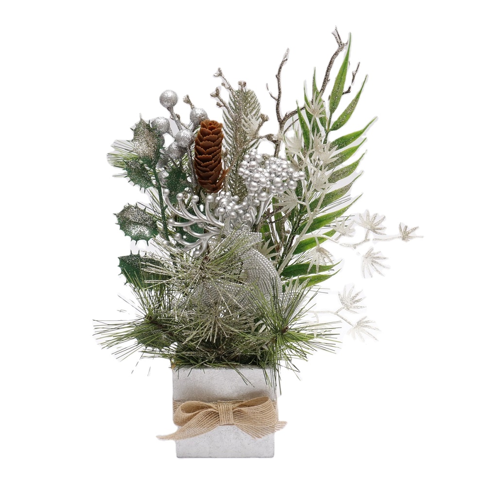 Home Decor Green 20CM decorated tree foam stand with silver shiny fabric wrapped artificial plants