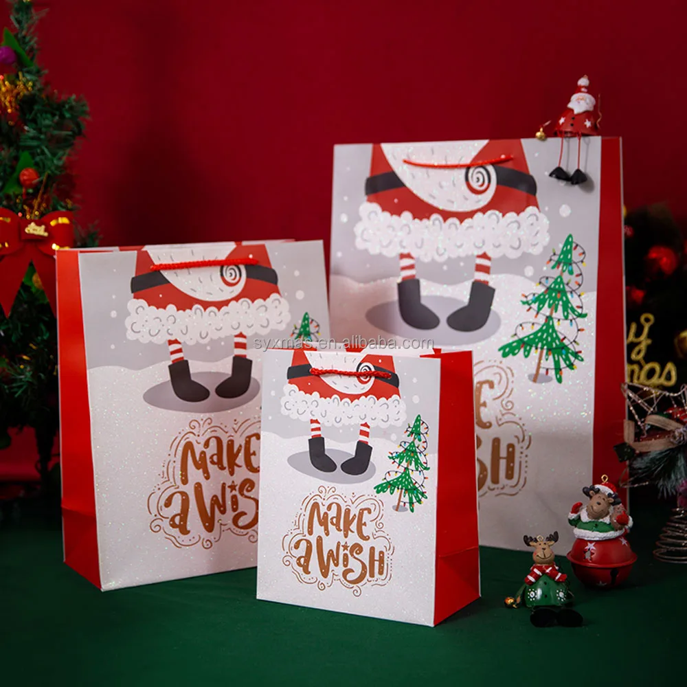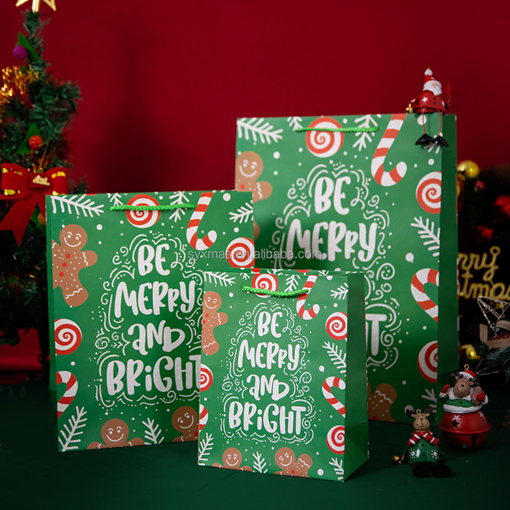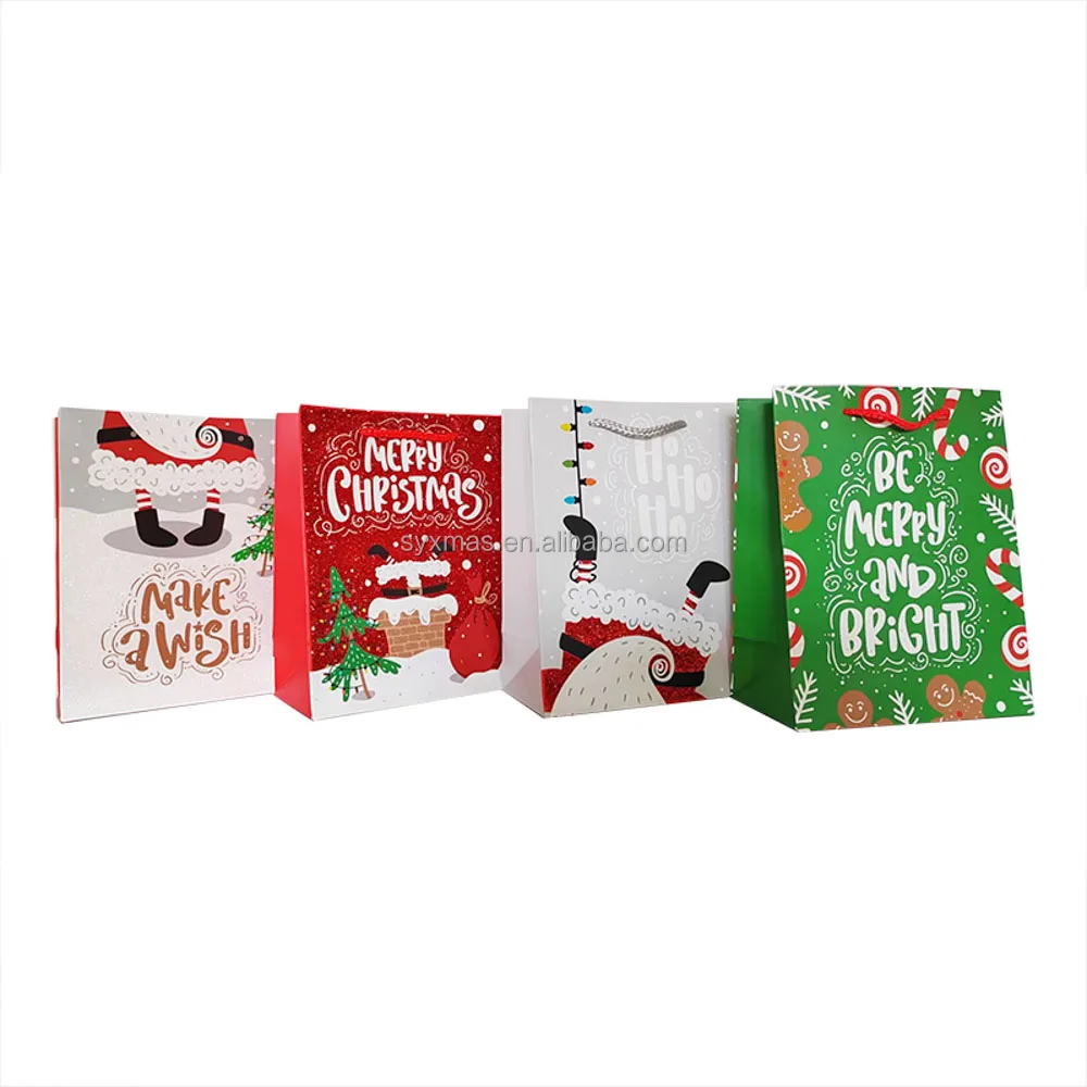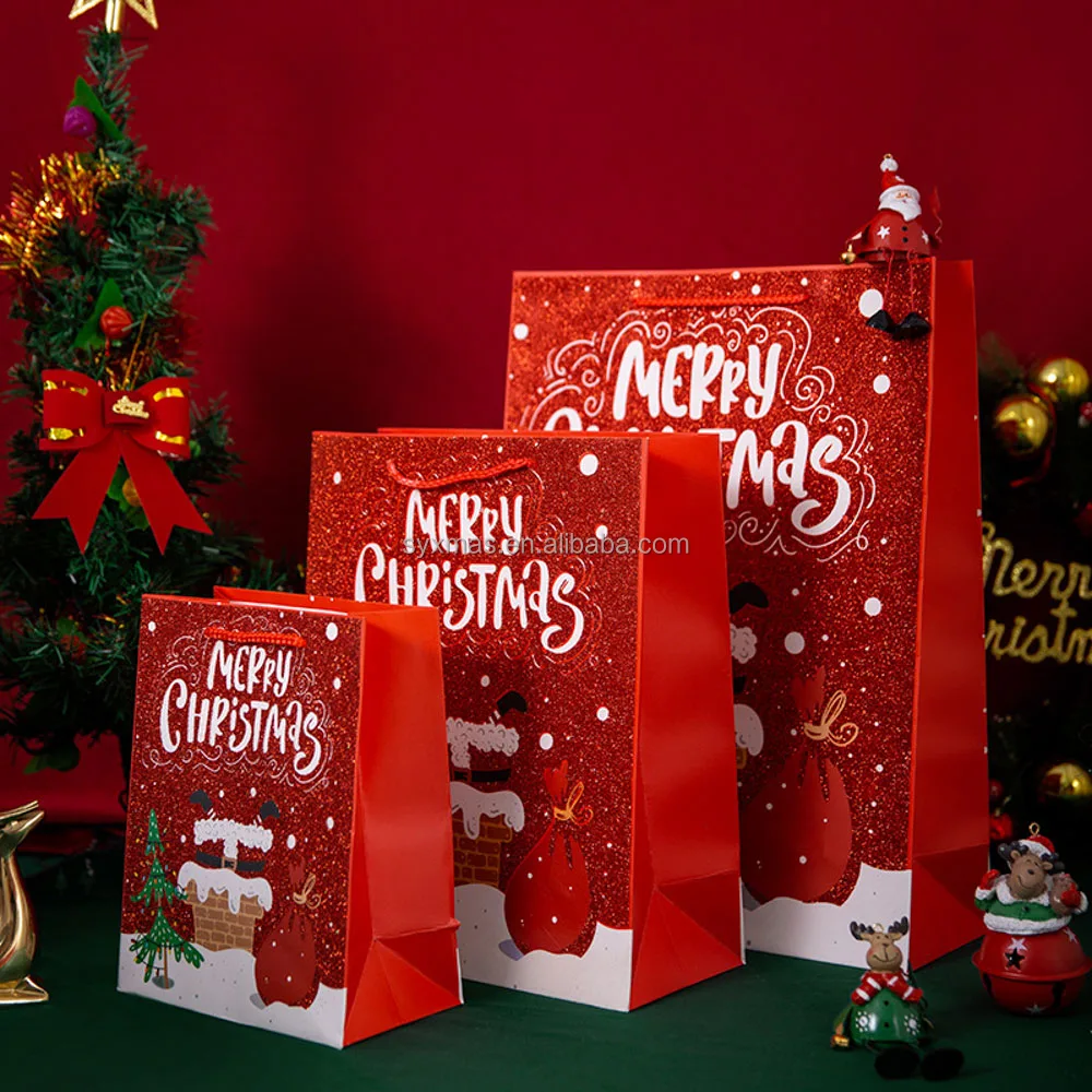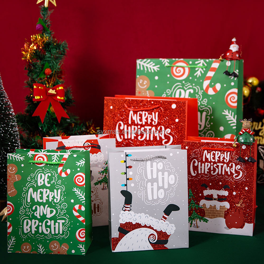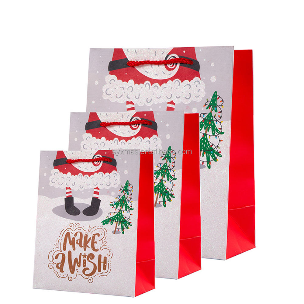 Hot selling Christmas paper bag set printed Christmas pattern with glitter
