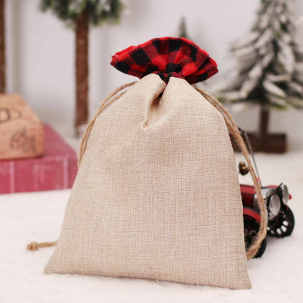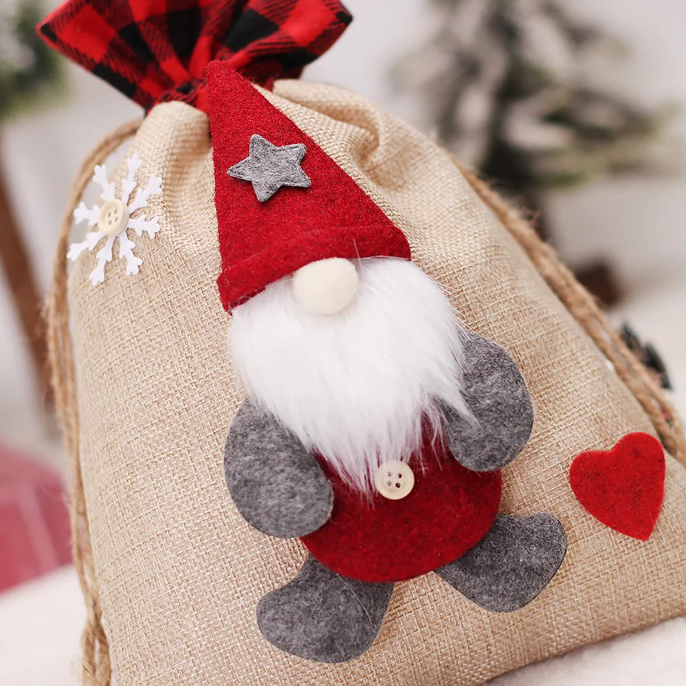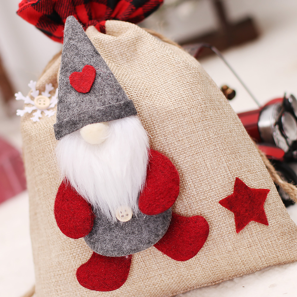 Hot selling cute Xmas decor burlap doll bundle mouth burlap bag