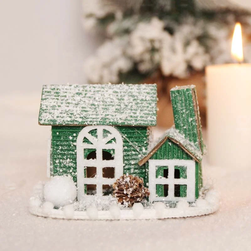 Latest design Popular Christmas decoration Cute Christmas Artware LED lighting Paper House